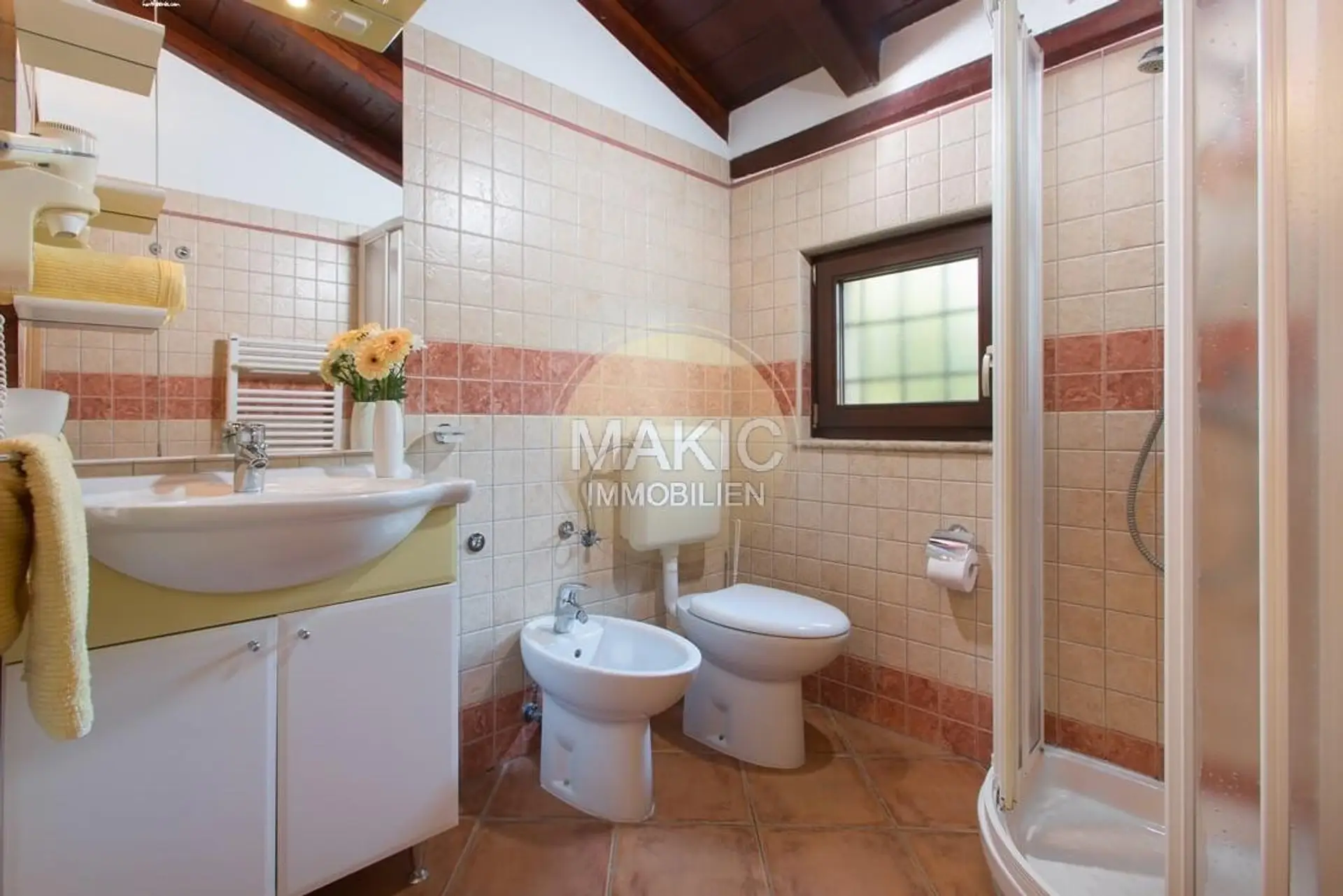 Das Erdgeschoss besteht aus einer Küche mit Essbereich, Wohnzimmer, Bad, WC und Abstellraum. Eine Holztreppe führt Sie nach oben, wo sich zwei Schlafzimmer und eine große Terrasse befinden.