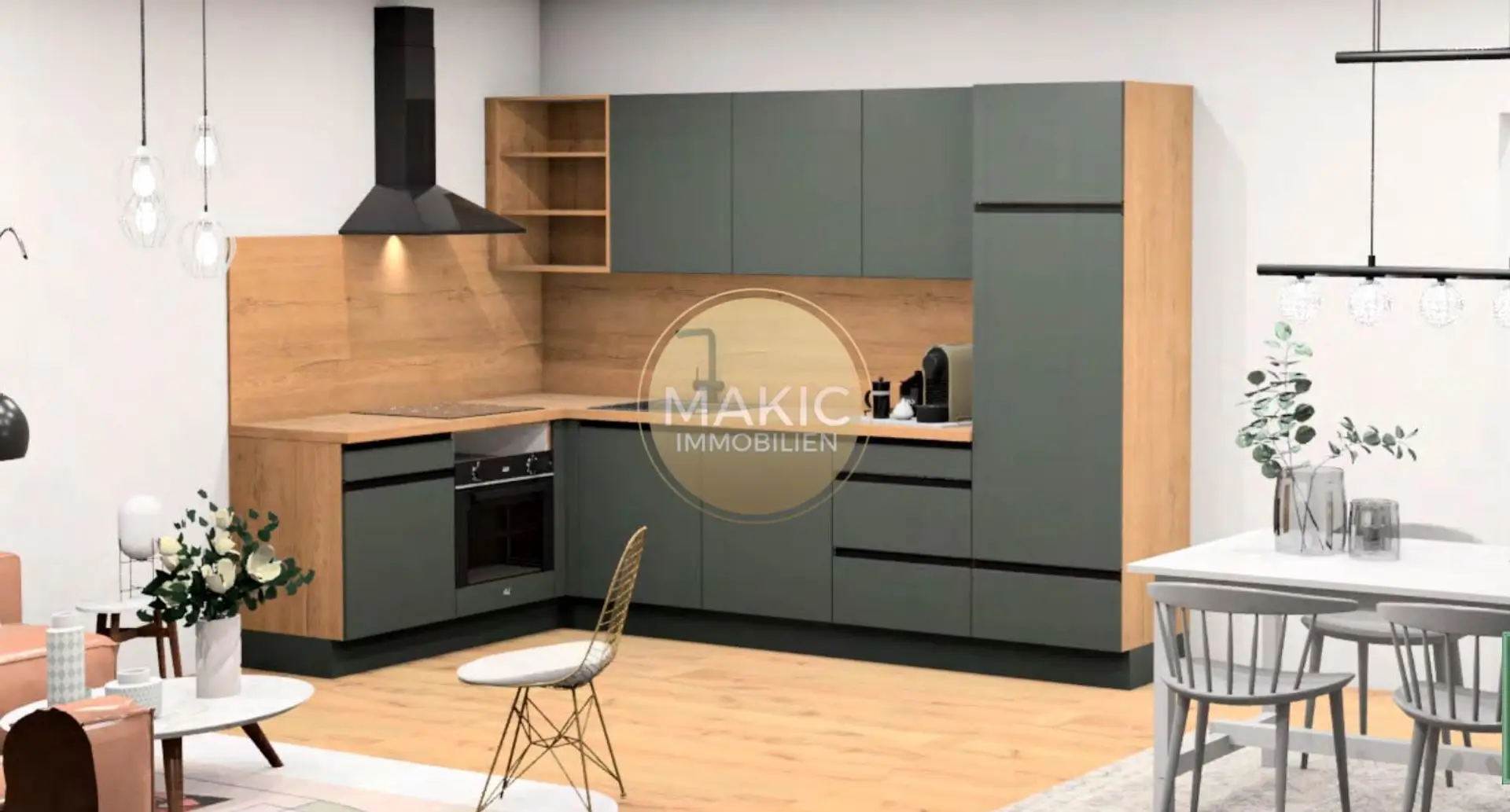 Diese Wohnung ist bereits mit einer hochwertigen Küche, vollständigen Küchengeräten und hochwertigem Eichenparkett ausgestattet und bietet Ihnen ein anspruchsvolles Raumerlebnis. Dennoch möchten wir darauf hinweisen, dass die Möglichkeit zur zusätzlichen Personalisierung gegen Aufpreis besteht, um Ihr Zuhause nach Ihrer einzigartigen Ästhetik und Ihrem Geschmack zu gestalten.