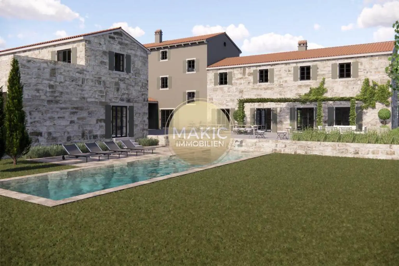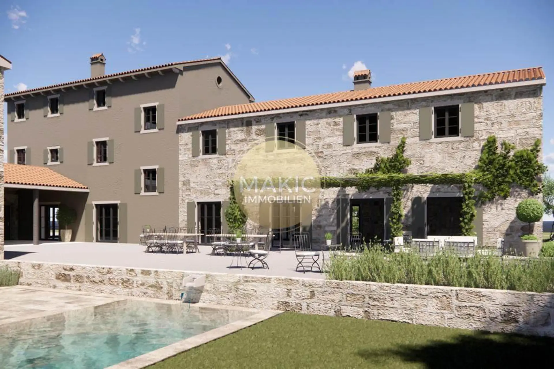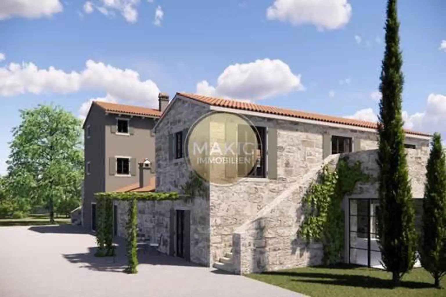 Das romantische istrische Landleben - dies erwartet den Neubesitzer dieses regionstypischen Steinhauses unweit von Rovinj, dem Hotspot Istriens. Direkt vom Nachbarn Eier, Olivenöl und Prosciutto holen und genüsslich auf der Terrasse eine Flasche istrischen Teran (Rotwein) bei Sonnenuntergang trinken…wer hat darauf nicht schon nächsten Sommer Lust?