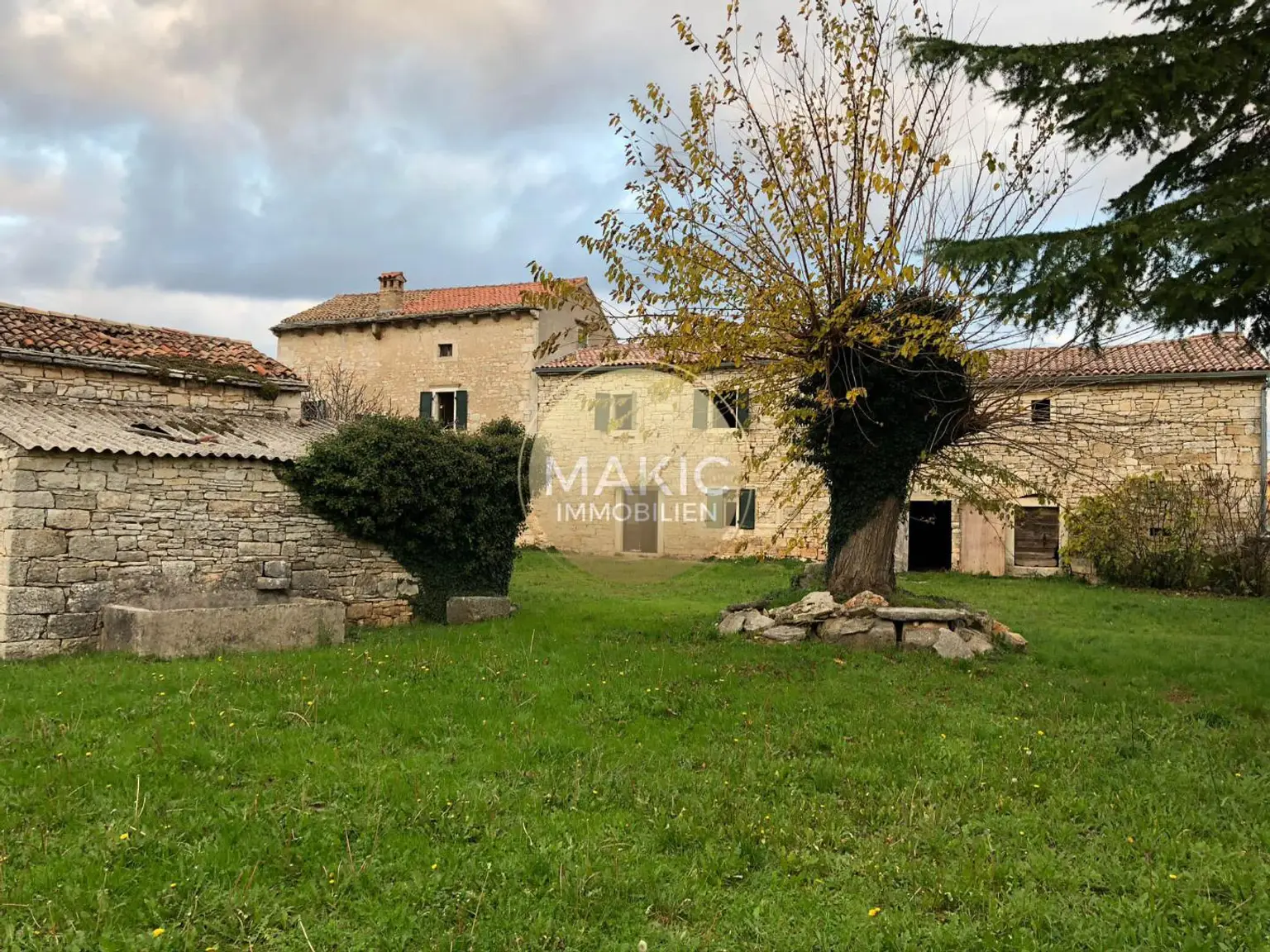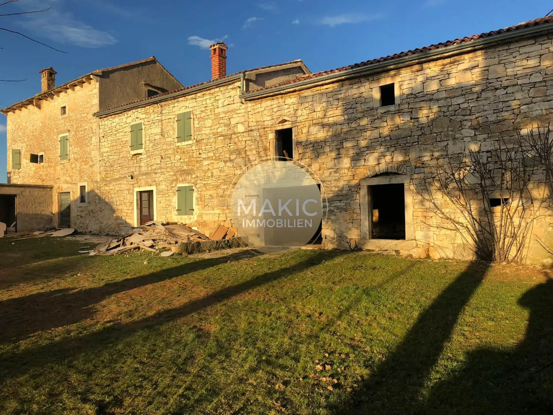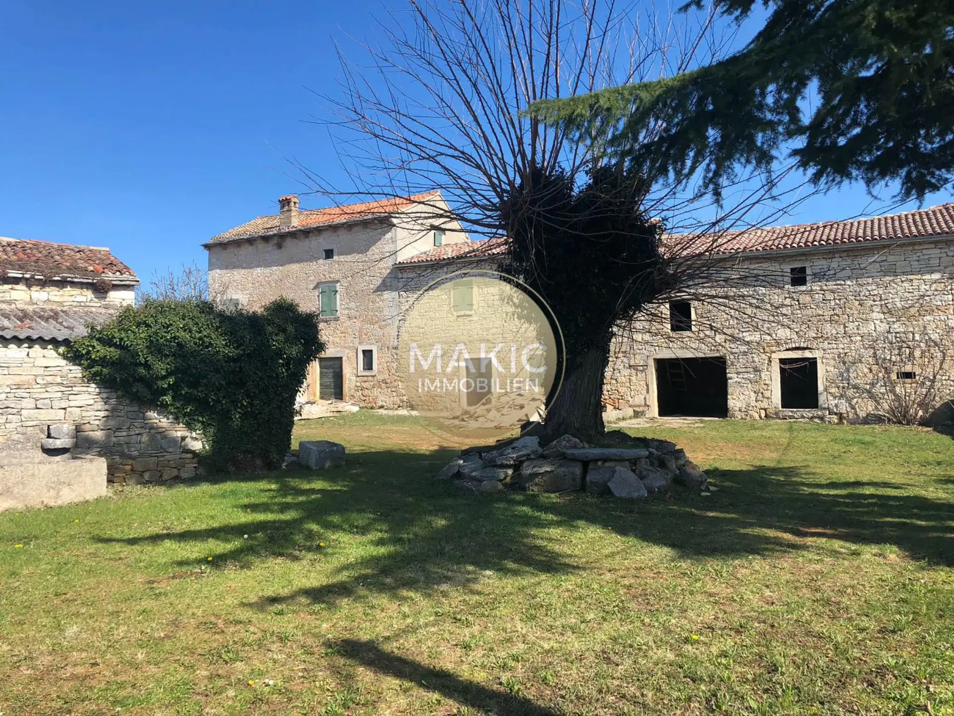 Mitten in diesem Gebiet, in einem kleinen Dorf in der Nähe von Sveti Lovreč, steht diese gut erhaltene Steinruine zum Verkauf, die vollständig von einer steinernen Trockenmauer umgeben ist. Das Anwesen gliedert sich in ein Haupthaus mit einer Grundrissbereiche von ca. 200 m2 und ein Nebengebäude von ca. 60 m2. Das sehr ruhig gelegene Grundstück ist von viel Grün begrenzt und umfasst eine Fläche von ca. 2.000 m2, alles befindet sich innerhalb der Bauzone. Für diese Immobilie hat der Eigentümer einen Vorentwurf für ein fertiges Haus von ca. 1.000 m2 entworfen.