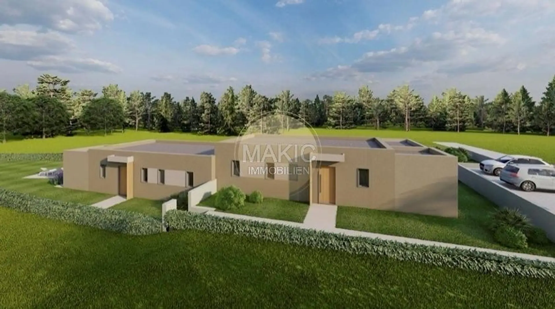 In einem kleinen und ruhigen Dorf in der Nähe von Tinjan, auf einem Grundstück von ca. 1.100 m2, befinden sich diese zwei im Bau befindlichen einstöckigen Häuser mit jeweils ca. 86 m2 Nettofläche.