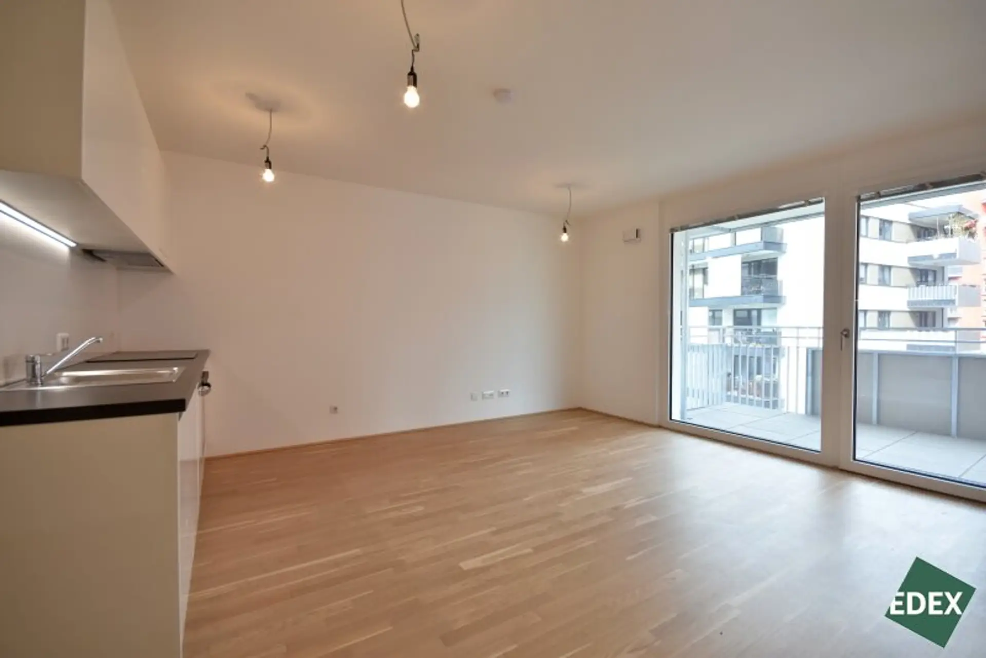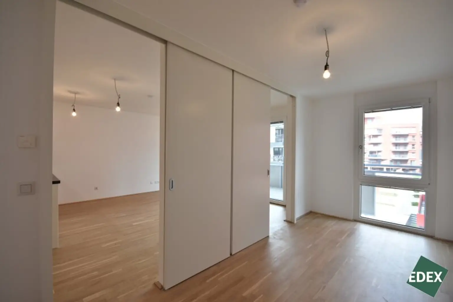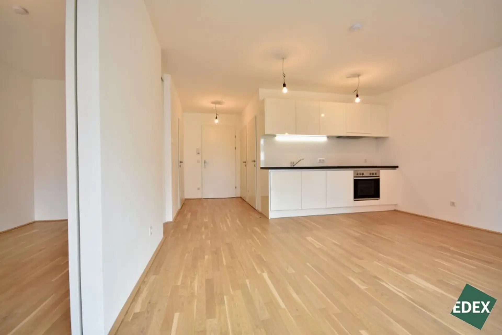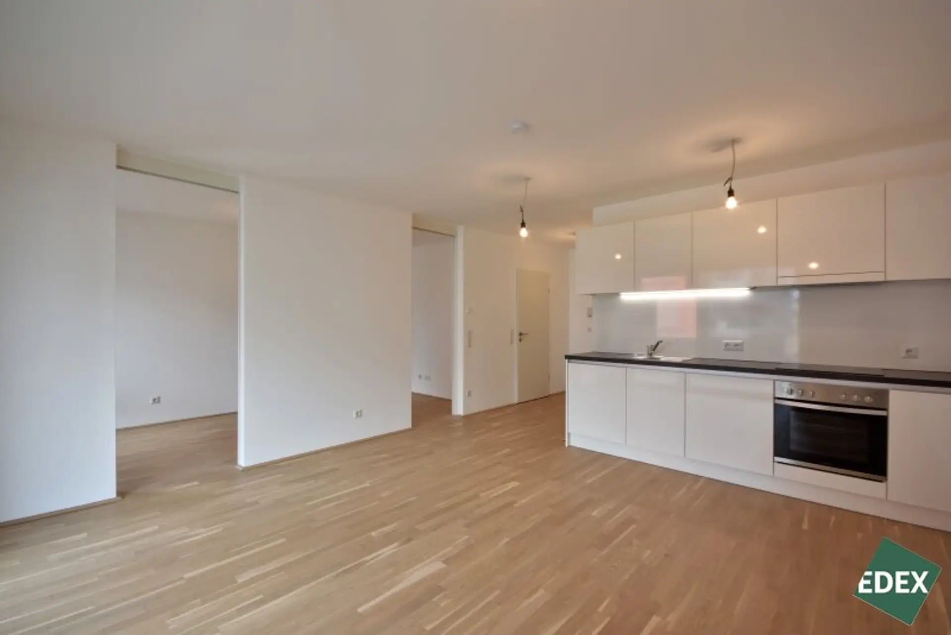 Zur Vermietung gelangt eine 2-Zimmer Wohnung in idyllischer und urbaner Atmosphäre. Die lichtdurchflutete Wohnung verfügt über einen Vorraum, einen Abstellraum, eine separate Toilette, ein modernes Badezimmer mit Dusche und Waschmaschinenanschluss, einen großzügigen Wohnbereich mit einer modernen, offenen Küche mit Zugang zu einem schönen Balkon sowie über ein Schlafzimmer. Die 3-fach-verglasten Fenster sind mit einem hochwertigen Sonnenschutz ausgestattet. Die Wohnräume sind mit schönem Parkettboden ausgestattet und die Nassräume mit Fliesen verlegt. Weiters verfügt die Wohnung über ein Kellerabteil. Im Haus befinden sich Kinderwagen- und Fahrradabstellräume.