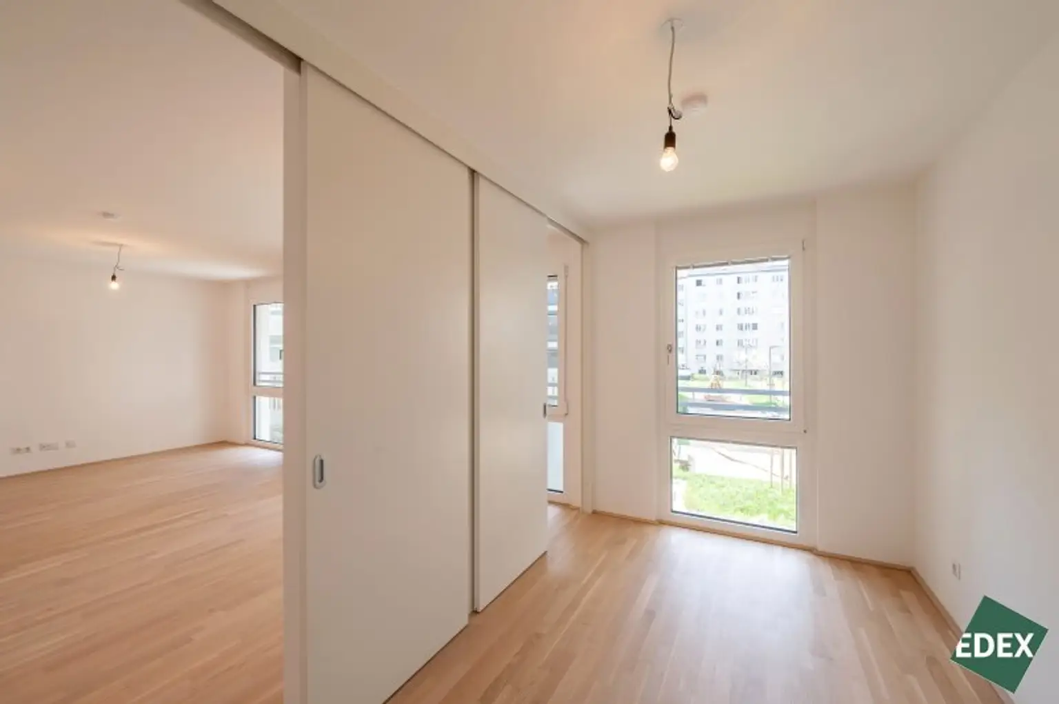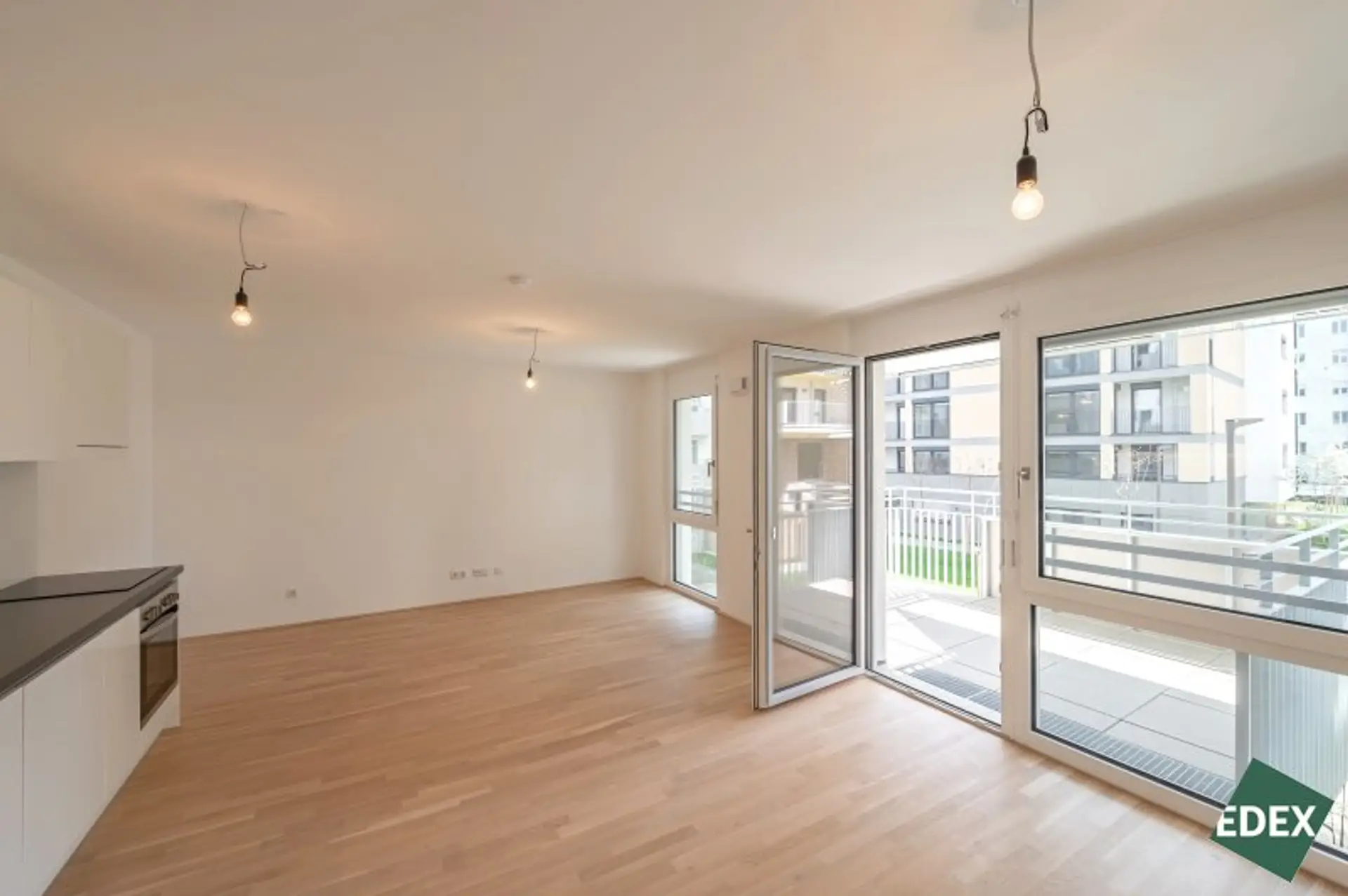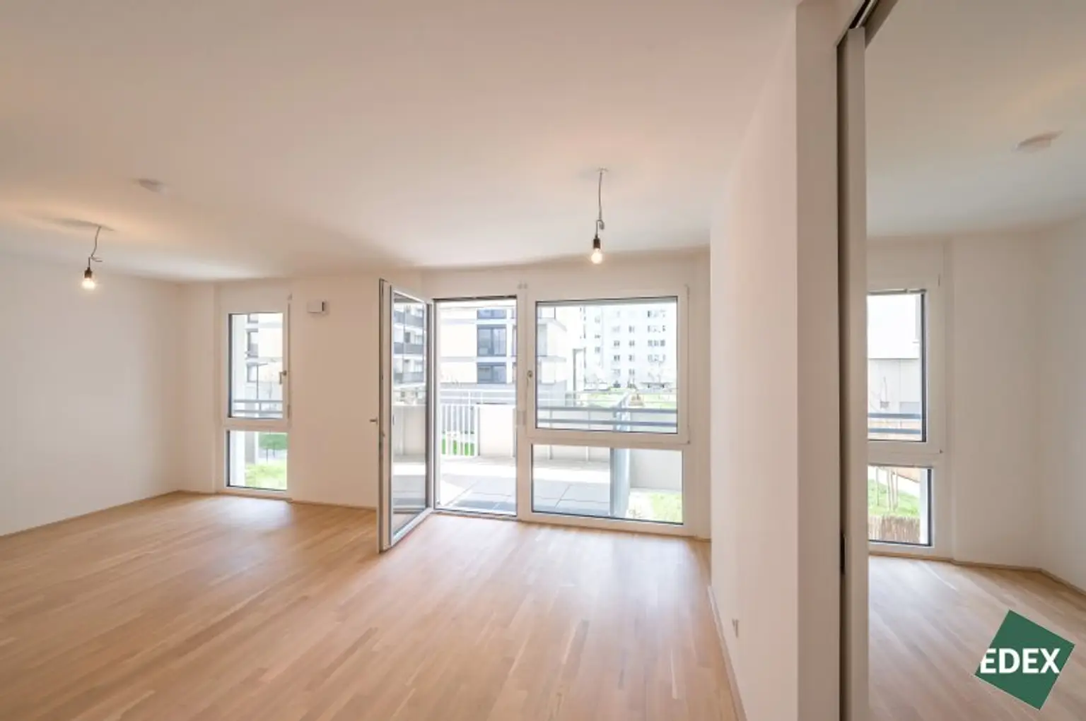 Zur Vermietung gelangt eine 2-Zimmer Wohnung in idyllischer und urbaner Atmosphäre. Die lichtdurchflutete Wohnung verfügt über einen Vorraum, einen Abstellraum, eine separate Toilette, ein modernes Badezimmer mit Badewanne und Waschmaschinenanschluss, einen großzügigen Wohnbereich mit einer modernen, offenen Küche mit Zugang zu einem schönen Balkon sowie über ein Schlafzimmer. Die 3-fach-verglasten Fenster sind mit einem hochwertigen Sonnenschutz ausgestattet. Die Wohnräume sind mit schönem Parkettboden ausgestattet und die Nassräume mit Fliesen verlegt. Weiters verfügt die Wohnung über ein Kellerabteil. Im Haus befinden sich Kinderwagen- und Fahrradabstellräume.