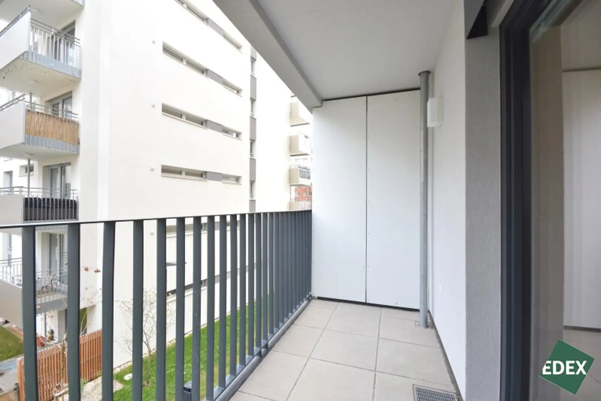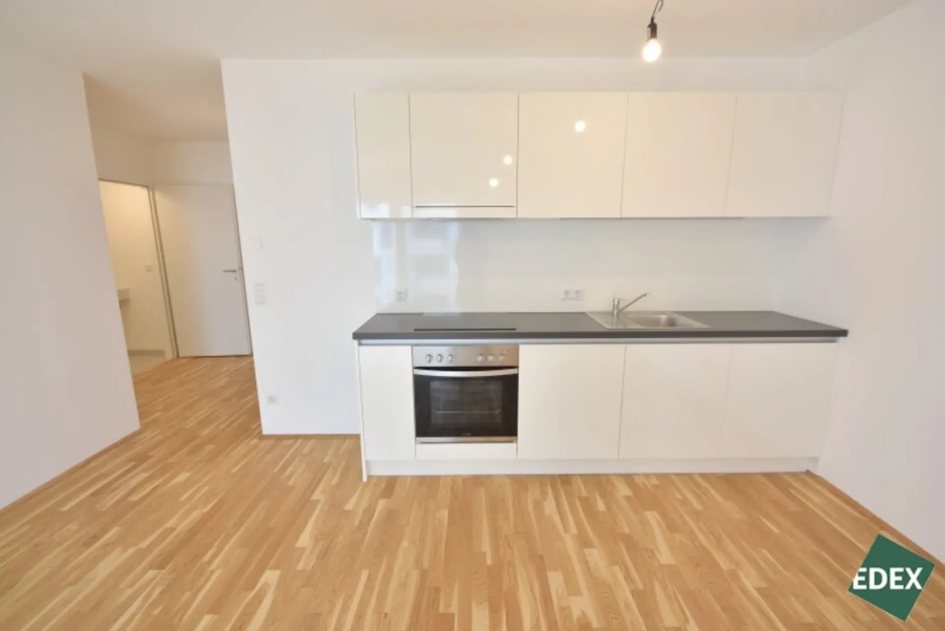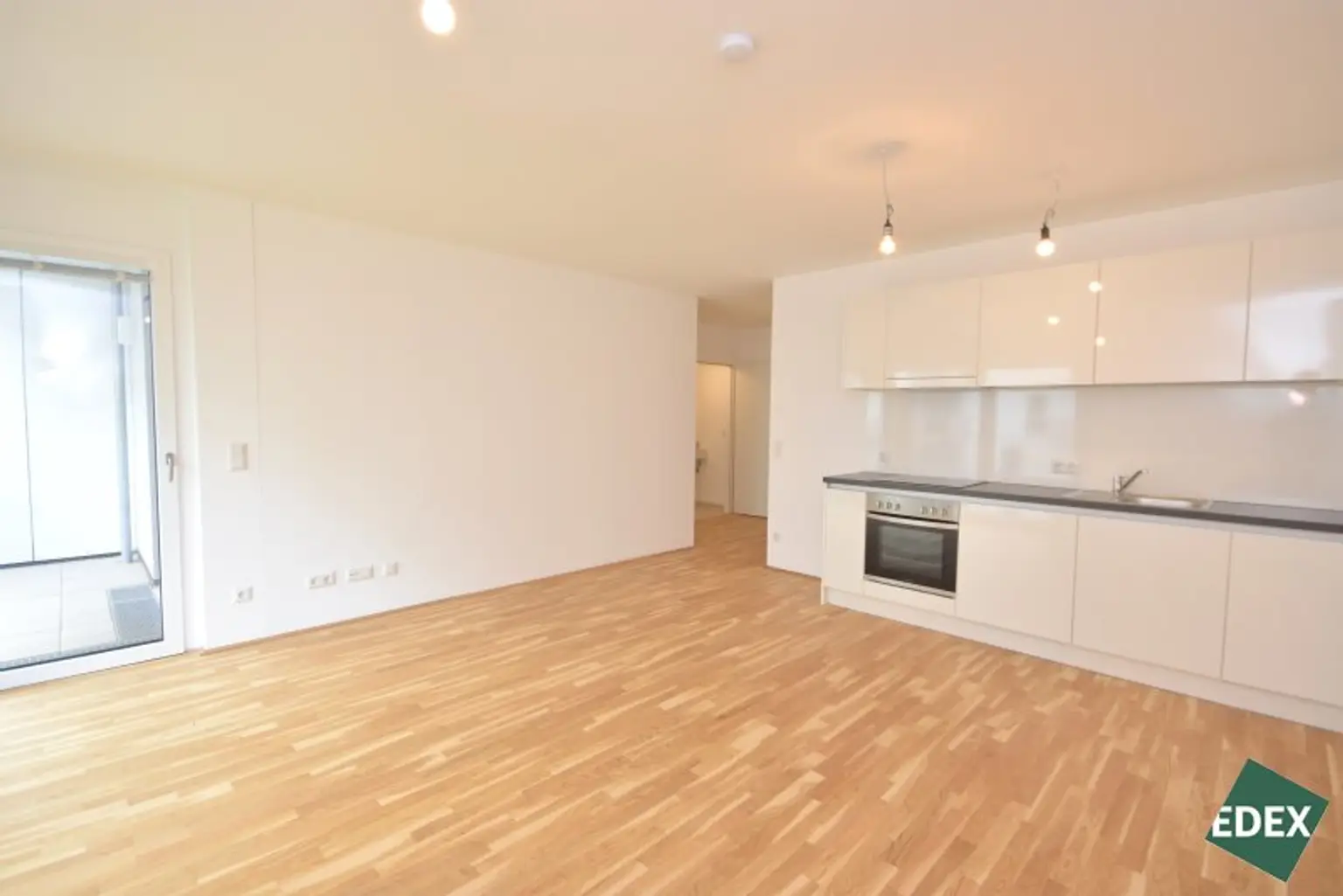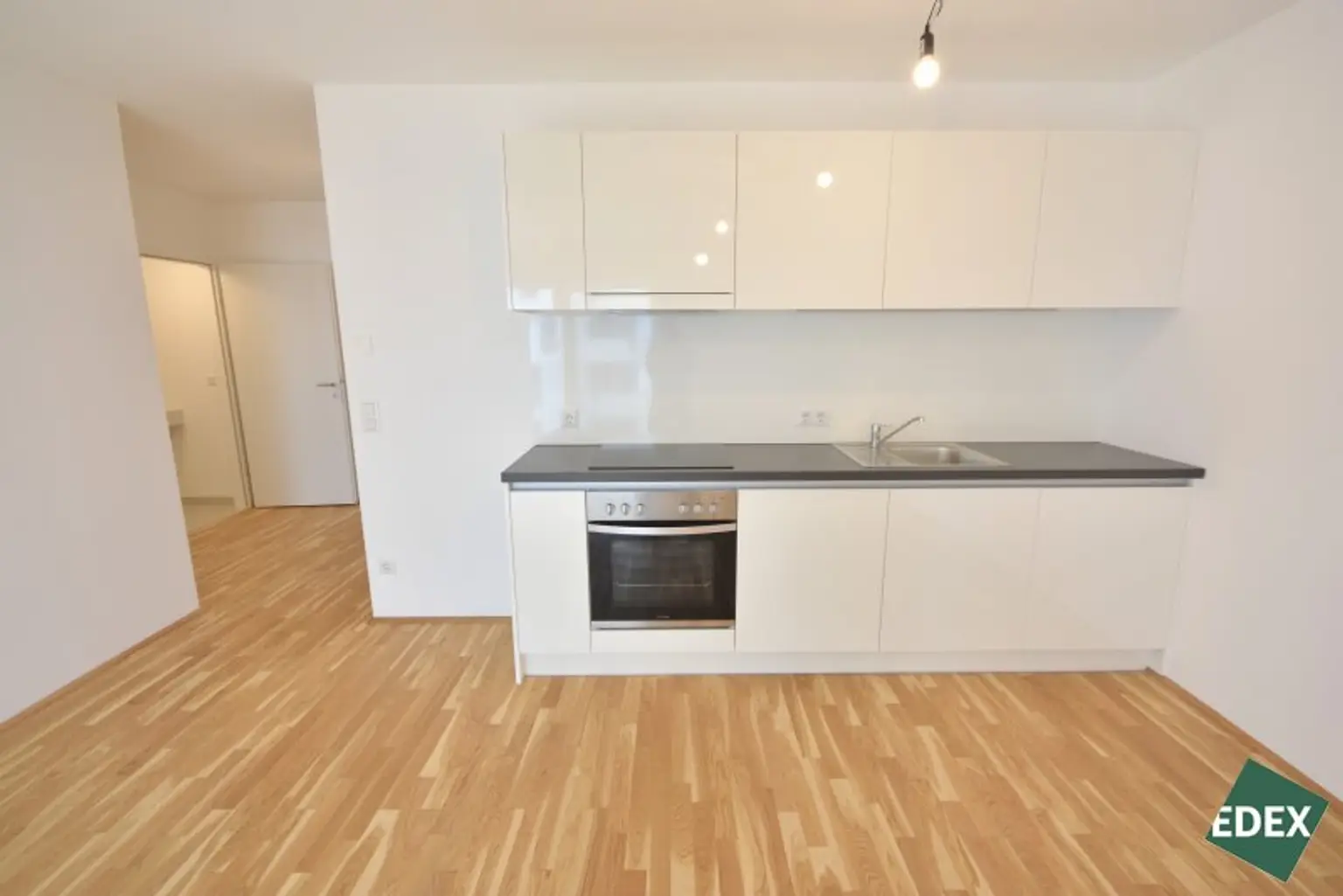 Zur Vermietung gelangt eine 2-Zimmer Wohnung in idyllischer und urbaner Atmosphäre. Die lichtdurchflutete Wohnung verfügt über einen Vorraum, einen Abstellraum, eine separate Toilette, ein modernes Badezimmer mit Badewanne und Waschmaschinenanschluss, einen großzügigen Wohnbereich mit einer modernen, offenen Küche sowie über ein Schlafzimmer. Die schöne Loggia ist sowohl über das Wohnzimmer, als auch über das Schlafzimmer begehbar. Die 3-fach-verglasten Fenster sind mit einem hochwertigen Sonnenschutz ausgestattet. Die Wohnräume sind mit schönem Parkettboden ausgestattet und die Nassräume mit Fliesen verlegt. Weiters verfügt die Wohnung über ein Kellerabteil. Im Haus befinden sich Kinderwagen- und Fahrradabstellräume.