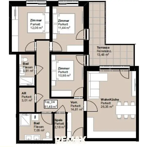TOP 04 ca. 91,46m² (ca. 13,48m² Terrasse)