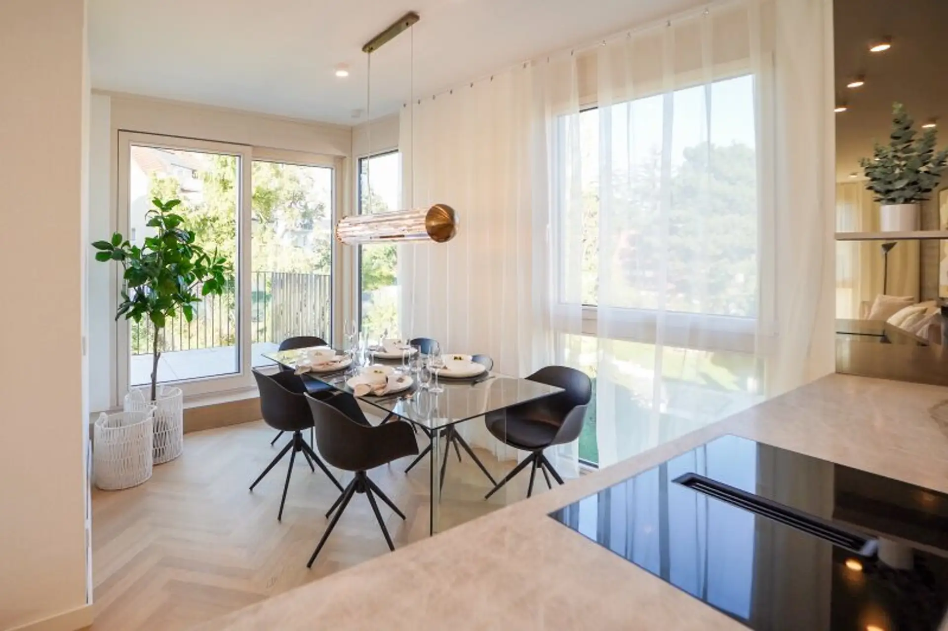 Die Fenster im Jardin Hermes bestehen aus massivem Holz. Holz ist nicht nur ein nachwachsender Rohstoff, sondern auch ein natürlicher CO₂-Speicher. Die Fenster erreichen exzellente Wärmedämmwerte, reduzieren Energieverluste und schaffen durch ihre warme Haptik ein unvergleichlich behagliches Wohngefühl. Sie sind langlebig, reparaturfreundlich und verbinden ästhetische Eleganz mit ökologischer Verantwortung.