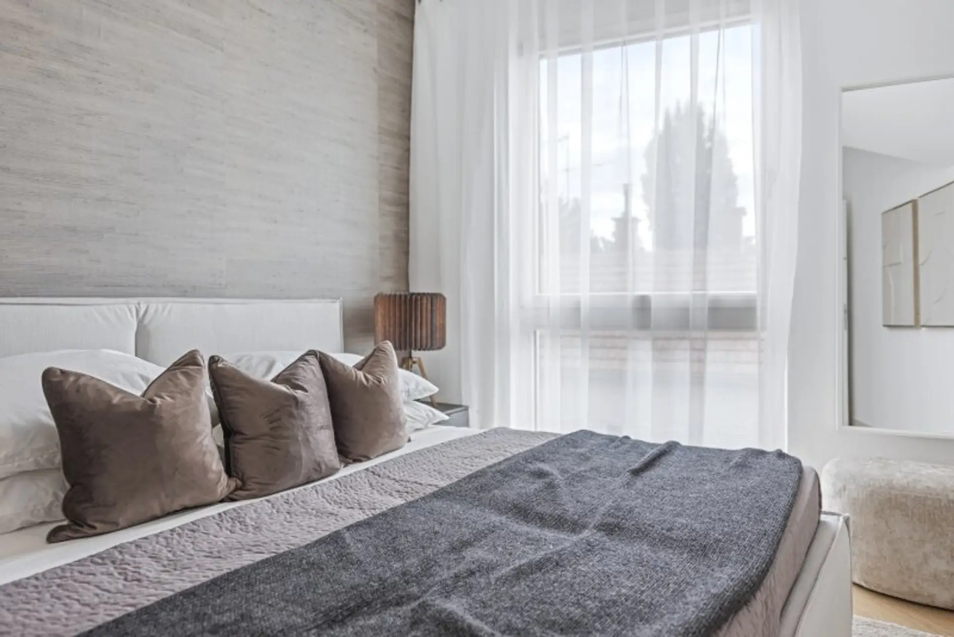 Neben dem Master-Bedroom verfügt das Penthouse über ein weiteres Schlafzimmer, welche natürlich auch als Gäste- oder Bürobereich ideal geeignet ist. Auch hier gibt es neben gut nutzbaren Stauflächen im Raum selbst eine eigene begehbare Garderobe durch welche das separate WC sowie ein weiteres Tageslicht-Badezimmer mit Dusche und Doppelwaschtisch zu betreten sind.