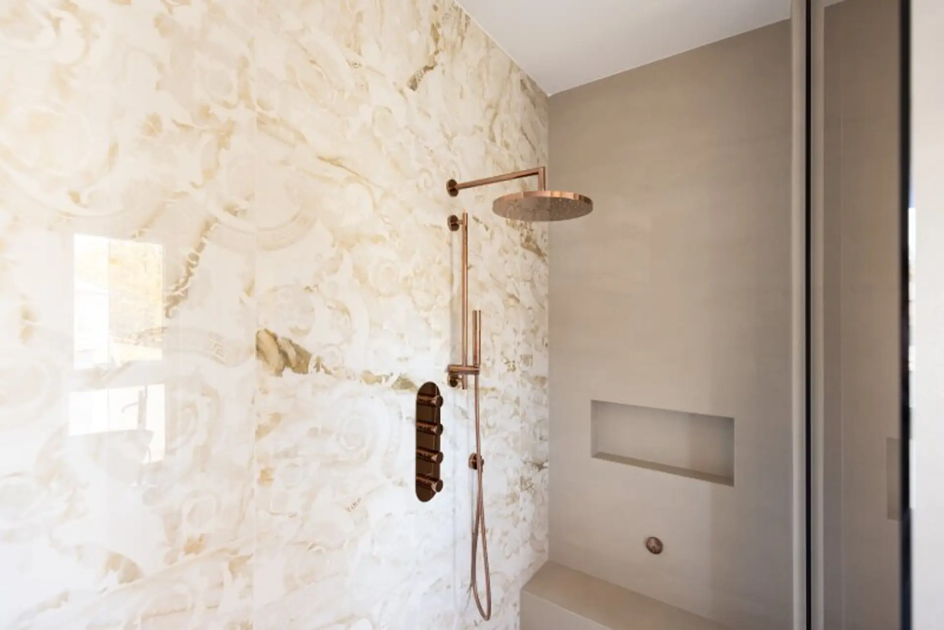 Ein besonderes Highlight bilden die Versace-Fliesen in den Duschen: luxuriöse Akzente, die italienische Designästhetik mit der Langlebigkeit keramischer Werkstoffe verbinden. Keramik ist nicht nur pflegeleicht und wasserresistent, sondern auch recyclingfähig – so wird Glamour Teil einer nachhaltigen Architektur.