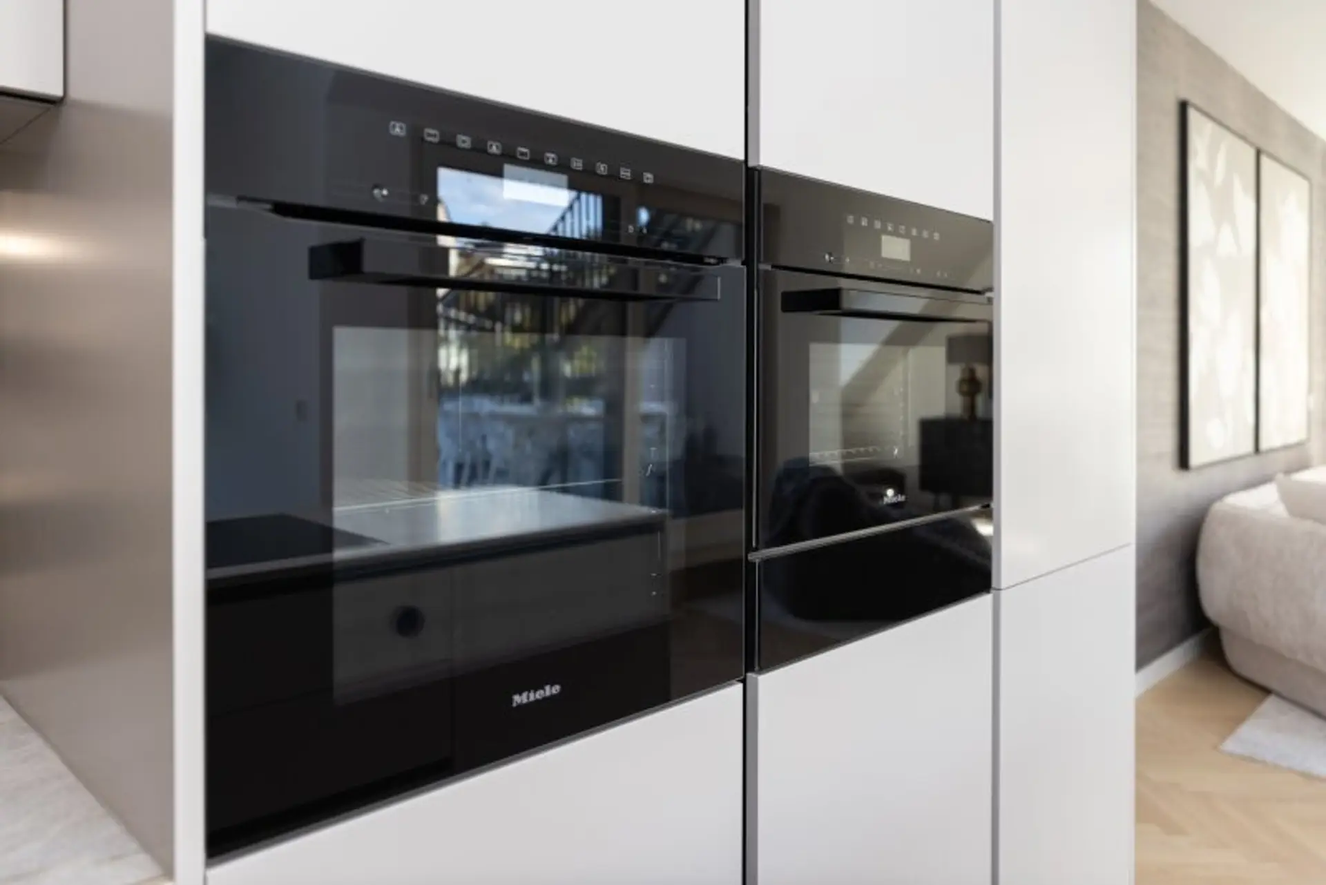 Die Kombination aus Deckenheizung und -kühlung mit einer effizienten und modernen Luftwärmepumpe schafft unvergleichliche Behaglichkeit. Strahlungswärme sorgt für wohlige Temperaturen im Winter, während sanfte Kühlung im Sommer Überhitzung verhindert – ganz ohne störende Luftbewegung. Betrieben mit 100% Ökostrom wird das System CO₂-neutral.
