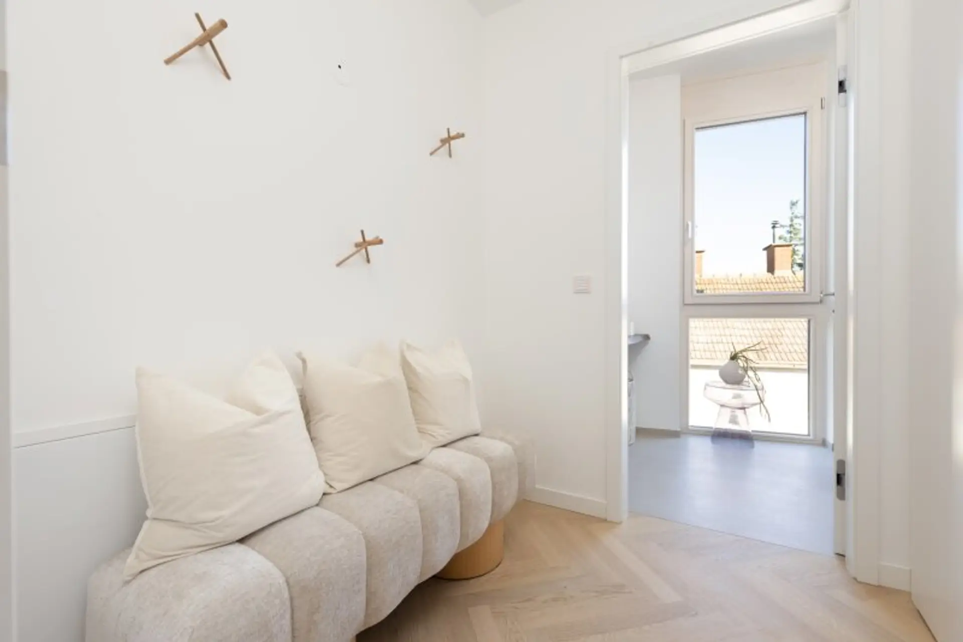 Nach Betreten der Wohnung befindet man sich im geräumig gestalteten Vorraum, welcher mit einer formschönen und ansprechenden Garderobe ausgestattet werden kann, die ausreichend Platz bietet.