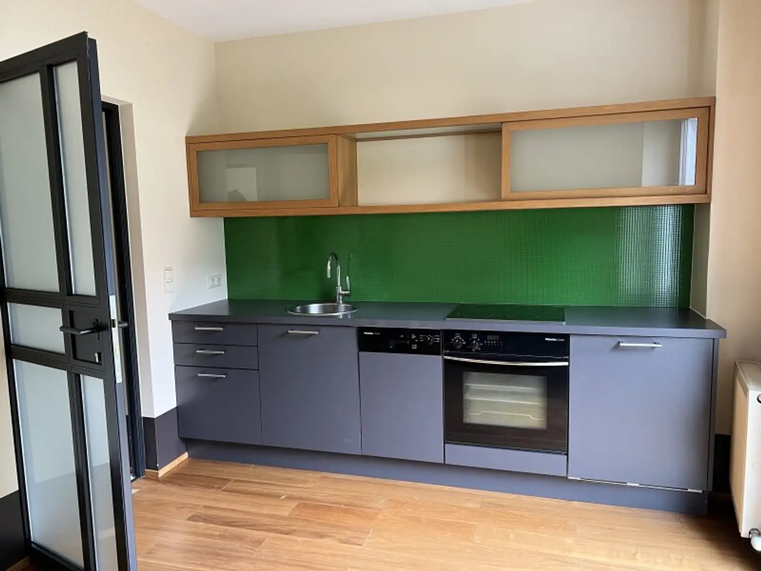 Vorraum, 7 Räume, WC, Gemeinschaftsraum mit eingebauter Küche und Zugang auf den Balkon (Westlage)
