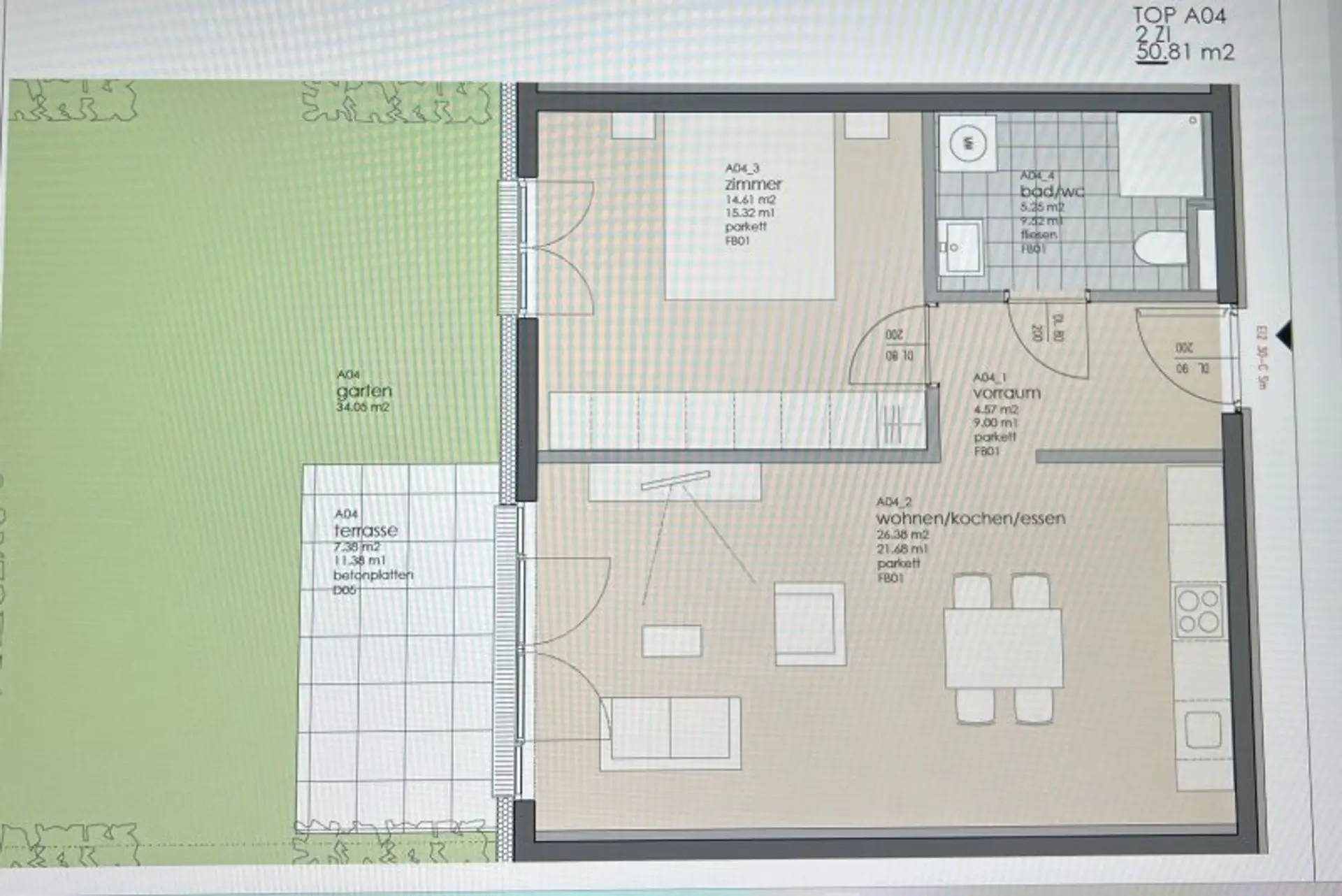 In Jenbach in der Jochlgasse gelangt eine sehr sonnige 2 Zi.-Wohnung (Top A04, im Haus A) mit Terrasse und Garten neu zur Vermietung.