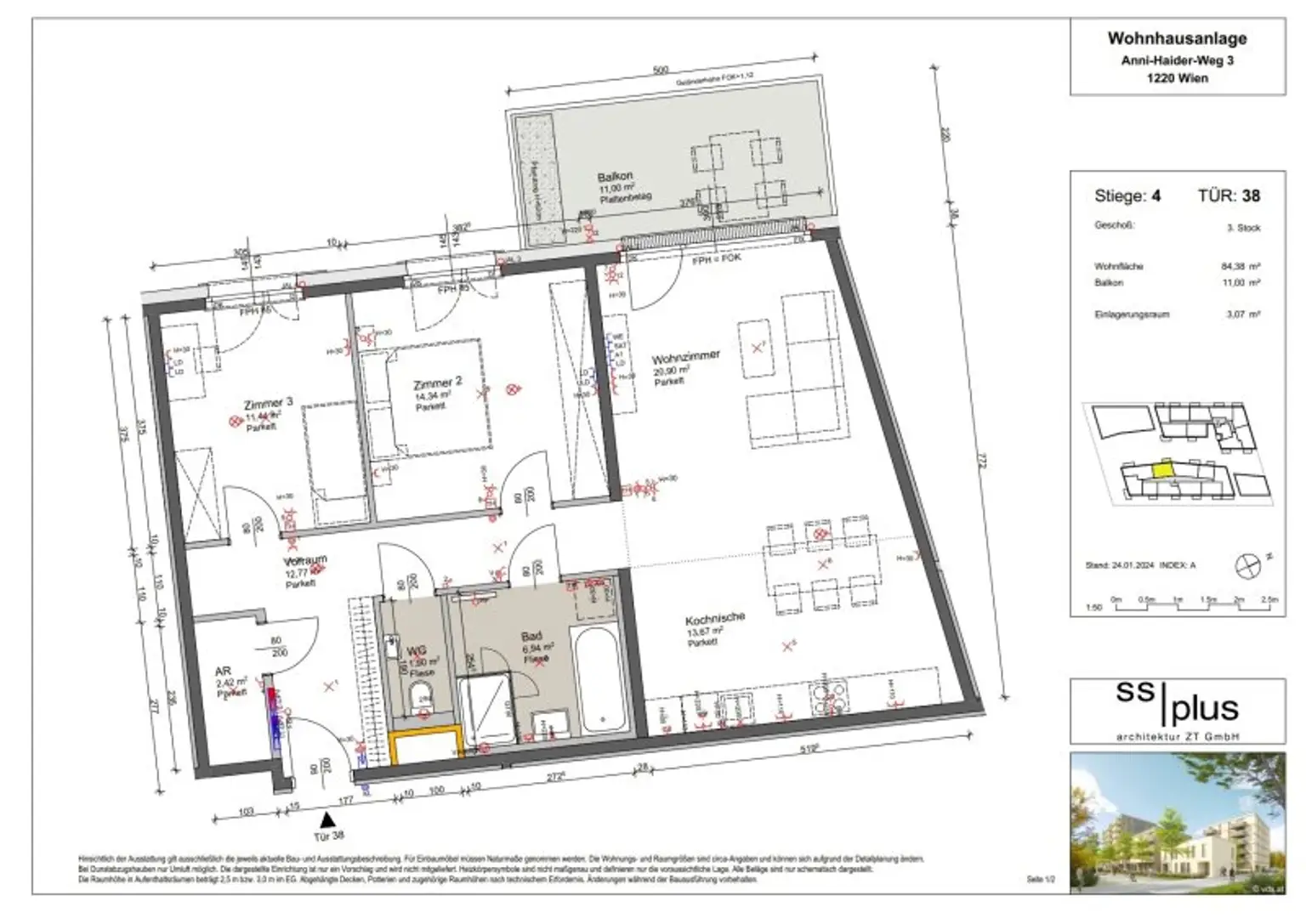 In Summe stehen auch 94 Tiefgaragenstellplätze im Projekt zum Verkauf welche bereits alle über Vorbereitungen für Wallboxen verfügen.