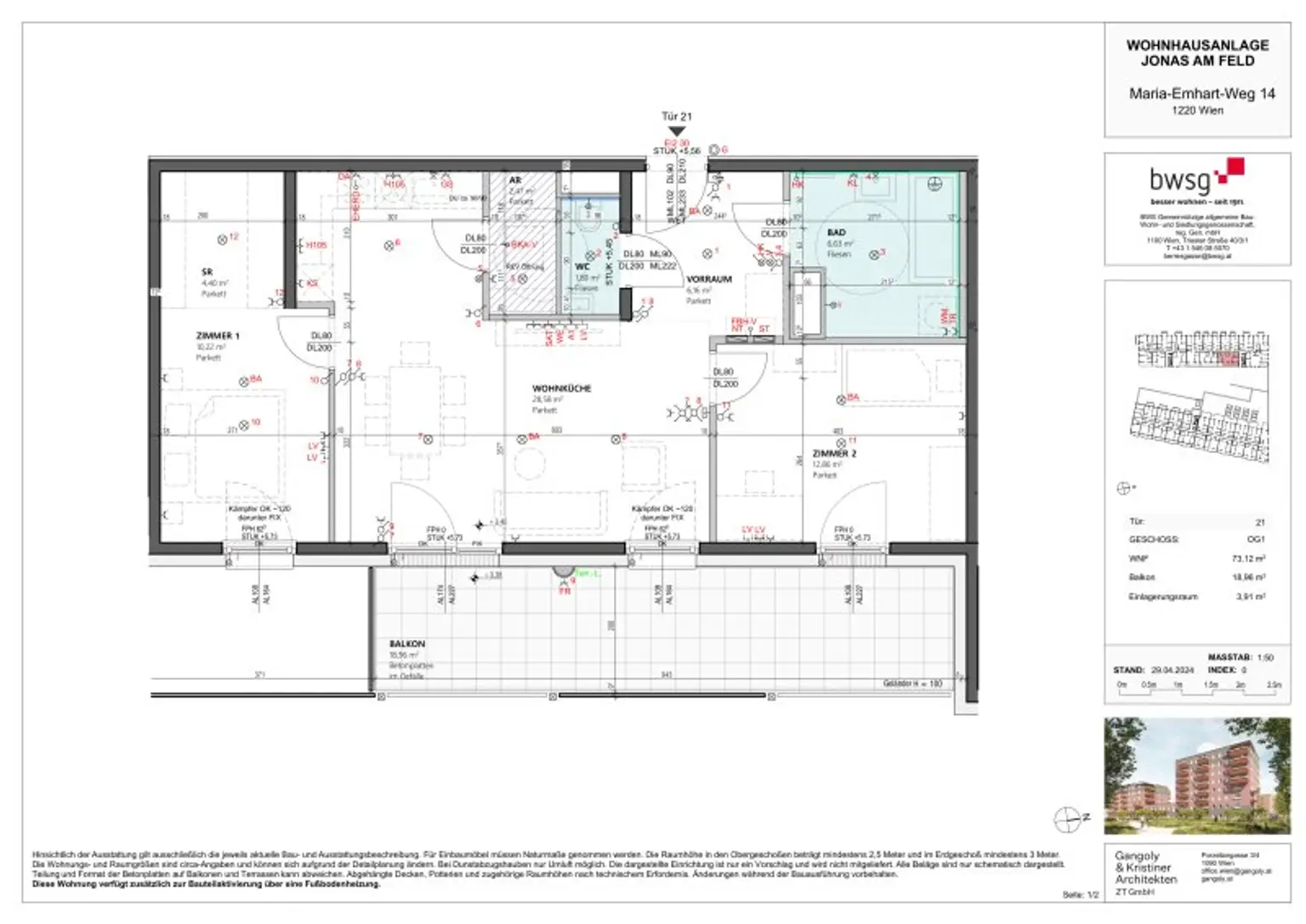 Die Wohnungsgrößen variieren von 39 Quadratmetern bis hin zu geräumigen 106 Quadratmetern, welche sich auf 1 bis 5 Zimmer aufteilen. Alle Wohnungen verfügen über moderne Grundrisse inkl. Freiflächen. Alle Einheiten verfügen über Kellerabteile und auf Wunsch kann ein Tiefgaragenplatz in der hauseigenen Garage erworben werden. Diese verfügen bereits über Vorbereitungen für Wallboxen.