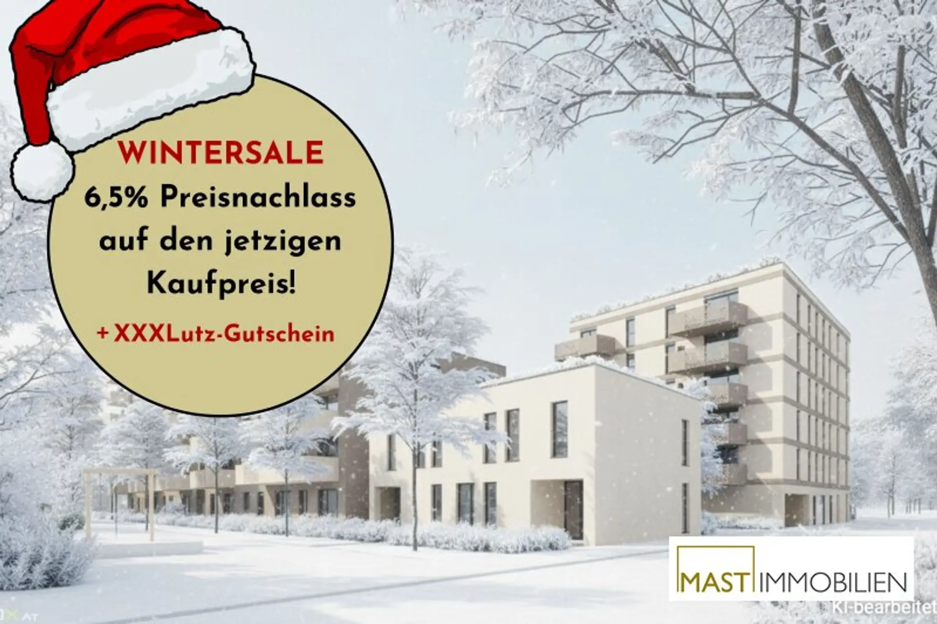 _In der kalten Jahreszeit lassen wir die Preise schmelzen: Beim Kauf einer Eigentumswohnung in einem unserer Objekte in der Berresgasse ersparst du dir bis 31.3.2026 die Nebenkosten* und bekommst so jede Wohnung um 6,5% günstiger. Darüber hinaus schenken wir dir noch einen XXXLutz - Gutschein im Wert von 1.000 Euro für jedes Zimmer!_