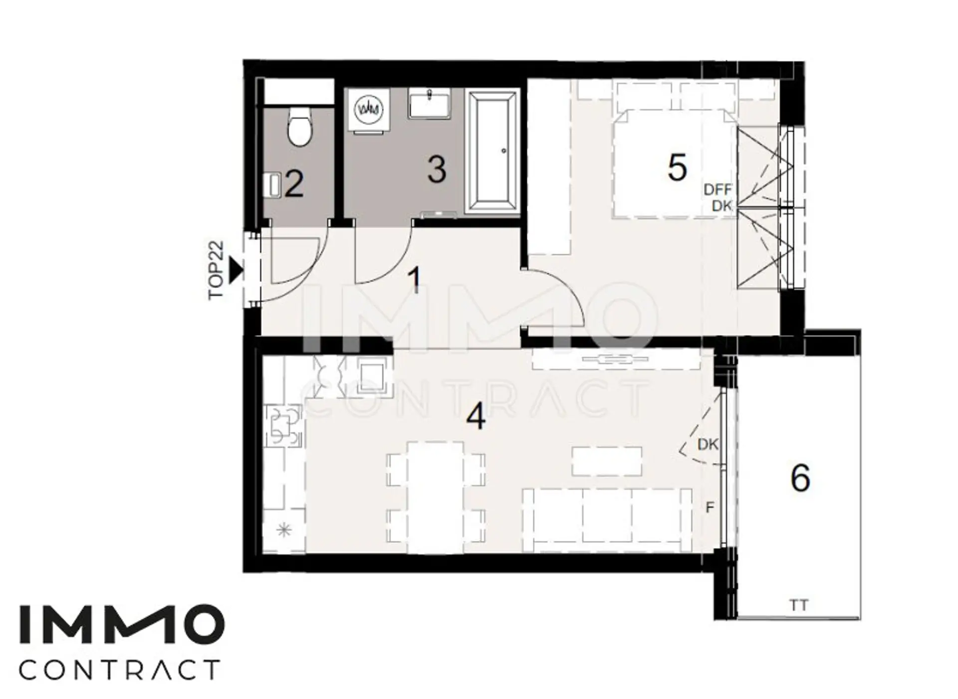 Im offenen Wohn-Essbereich verschmelzen Kochen, Genießen und Wohnen zu einem harmonischen Ganzen. Die Wohnküche bietet direkten Zugang auf den südseitigen Balkon, wo Sie die Sonne genießen oder den Abend gemütlich ausklingen lassen können.