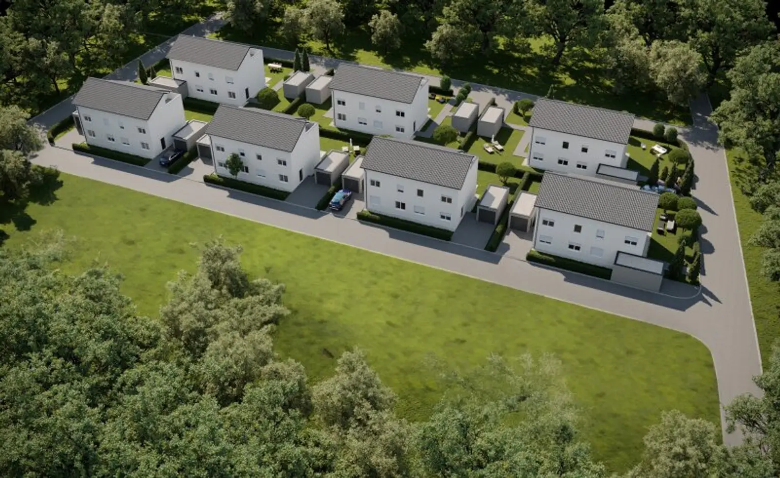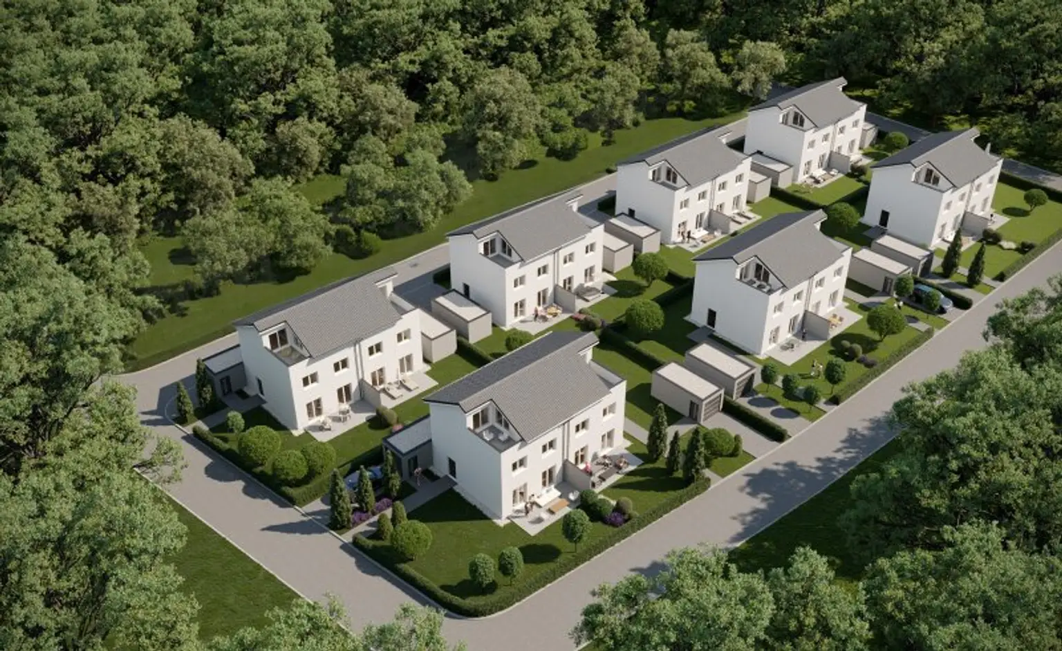 • 6 schlüsselfertige Doppelhaushälften (ohne Küche)