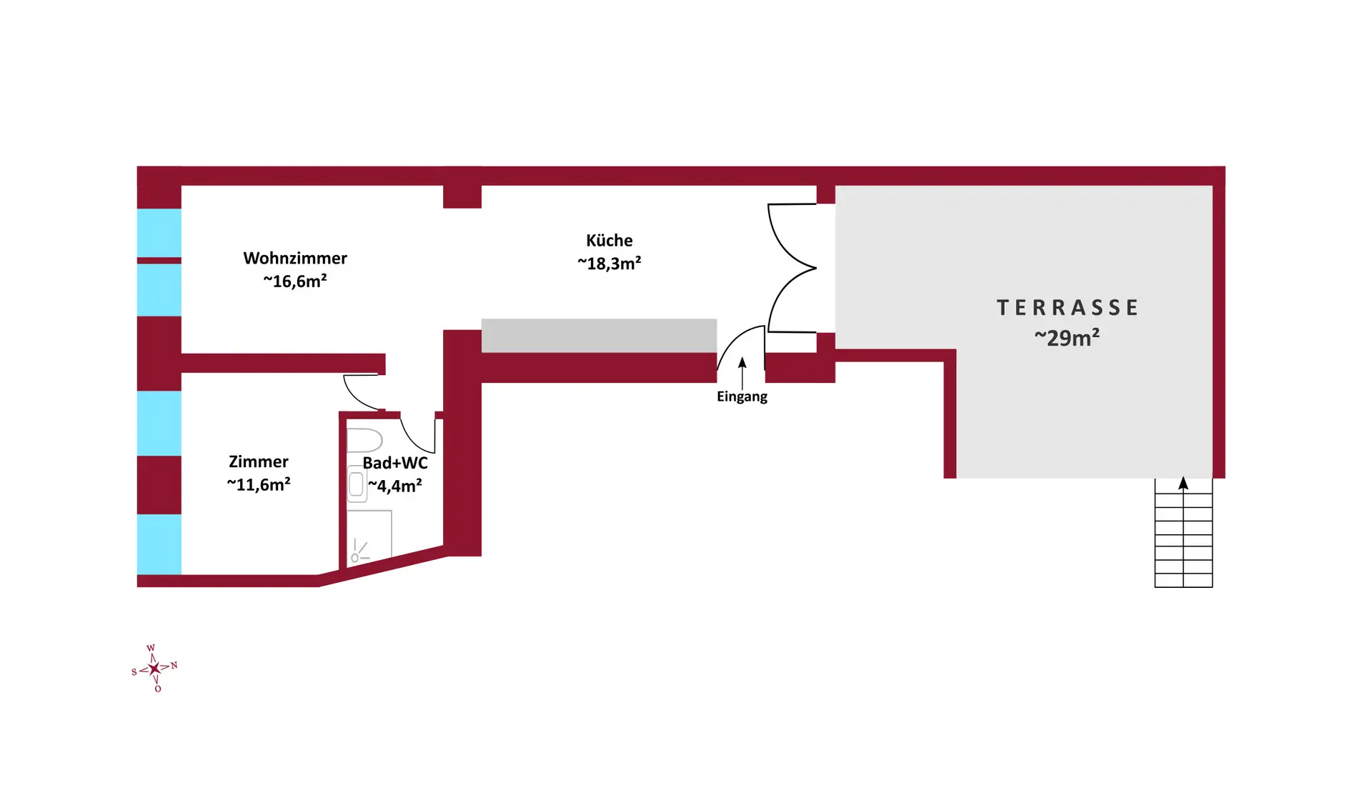 Aufteilung der insgesamt ca. 79,9 m² großen 2-Zimmer Wohnung: