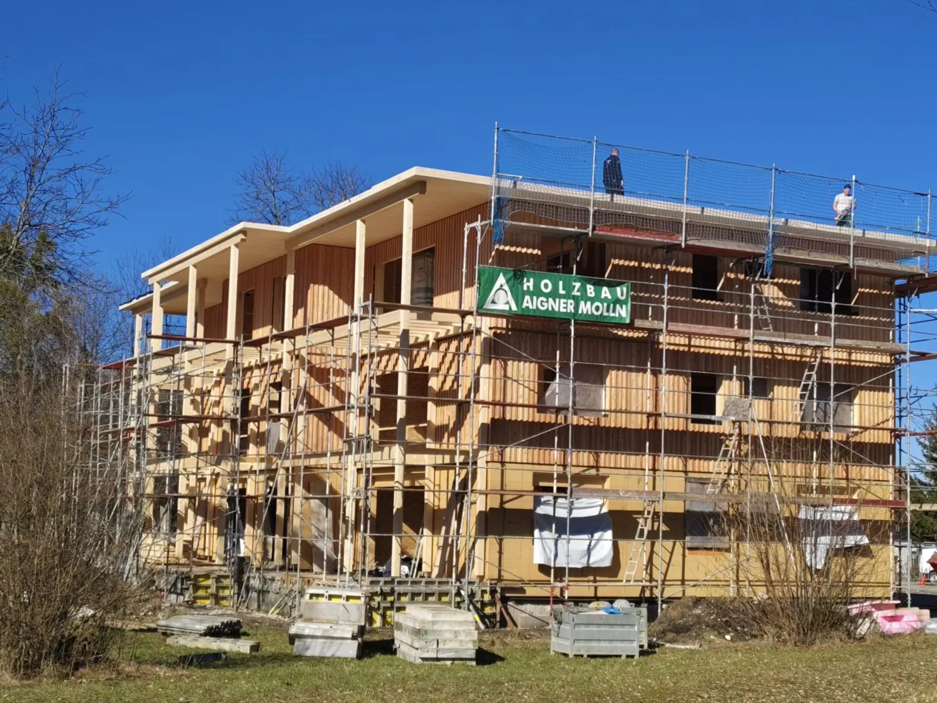 Die klare Architektur der Gebäude und die elegante Holzfassade verleihen dem Wohlfühlprojekt ein zeitlos-modernes Erscheinungsbild.