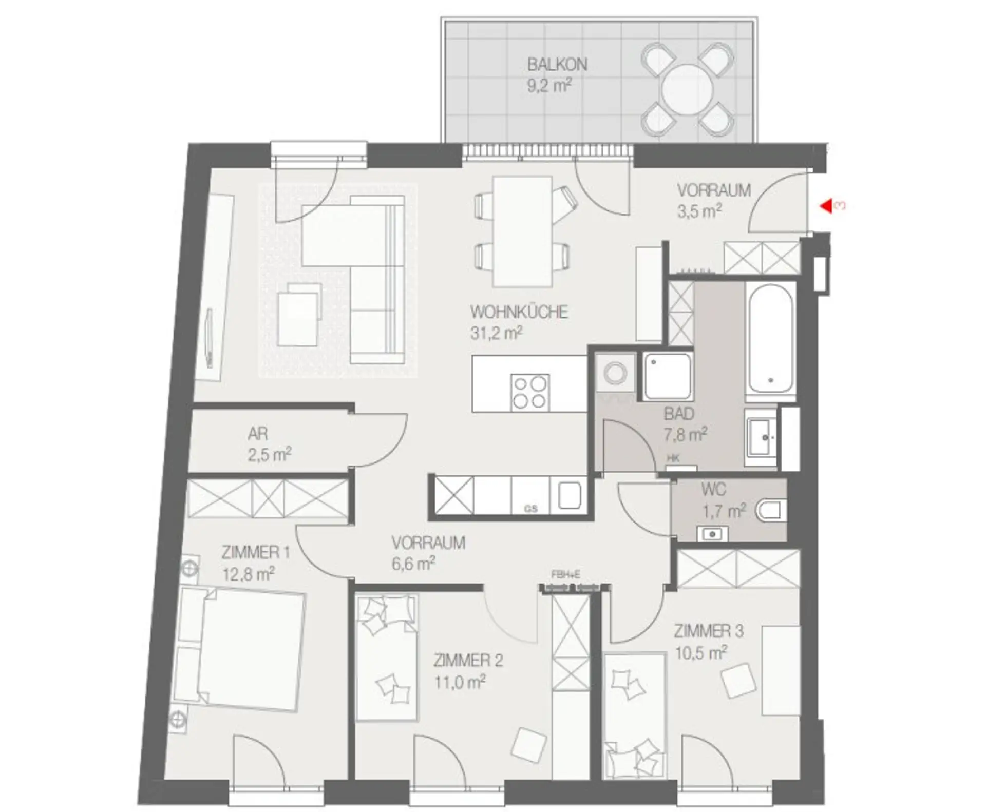 * 3–4 Zimmer-Wohnungen von 63-89 m² – alle mit großzügigen Freiflächen wie Terrassen oder Balkonen