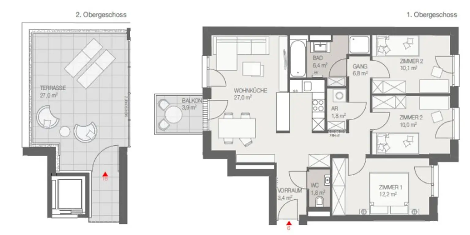 Geschoß: 1.OG + Dachterrasse im 2.OG (DG)