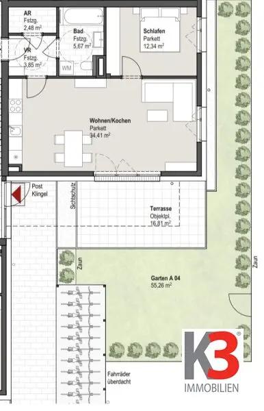 Das Bauvorhaben umfasste drei Baukörper. Die Wohnung, die ich Ihnen hier vorstellen darf, befindet sich im Haus A, im Erdgeschoss.