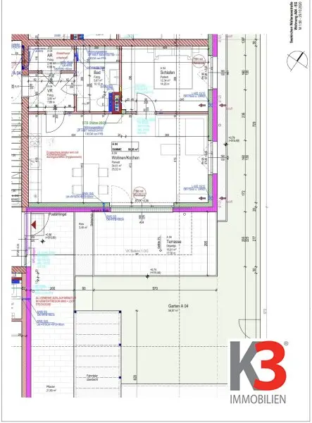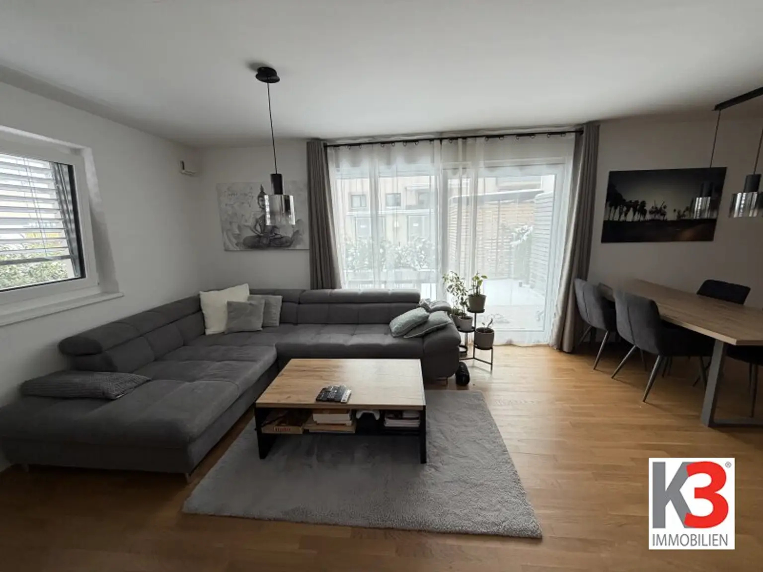 Das Herzstück dieser Wohnung ist sicher der offene, helle Koch-, Wohn-, Essbereich mit direktem Zugang zur Terrasse und zum Garten.