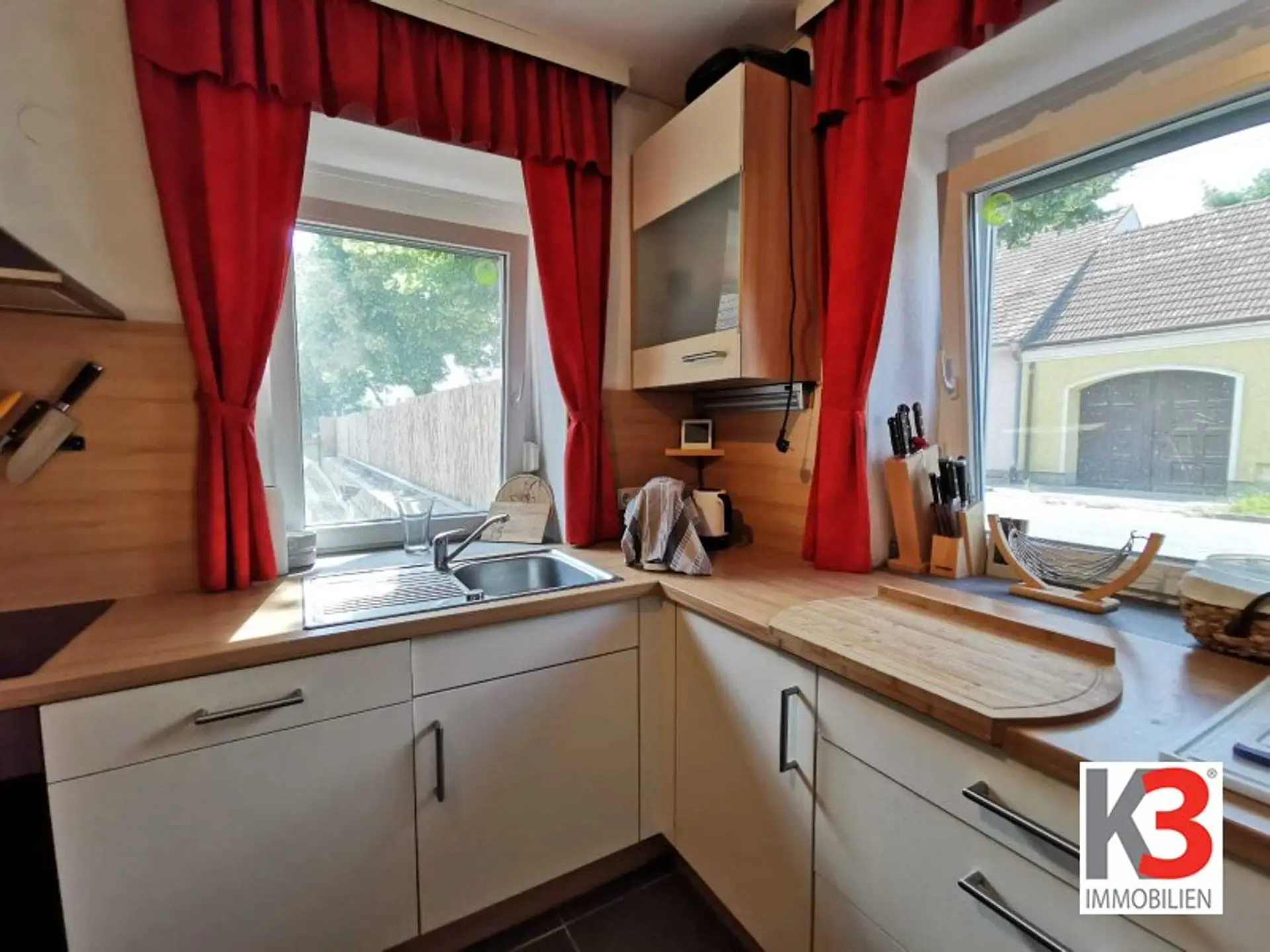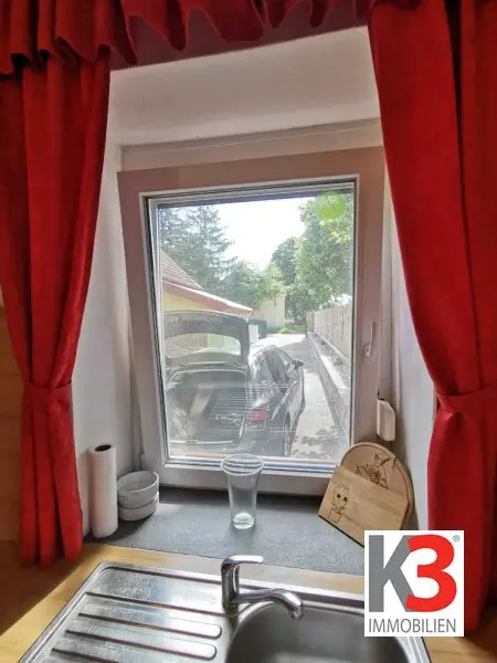 Beim Betreten des Hauses gelangt man direkt in den Vorraum, links in die Wohnküche und weiter in das Wohnzimmer sowie in das Schlafzimmer