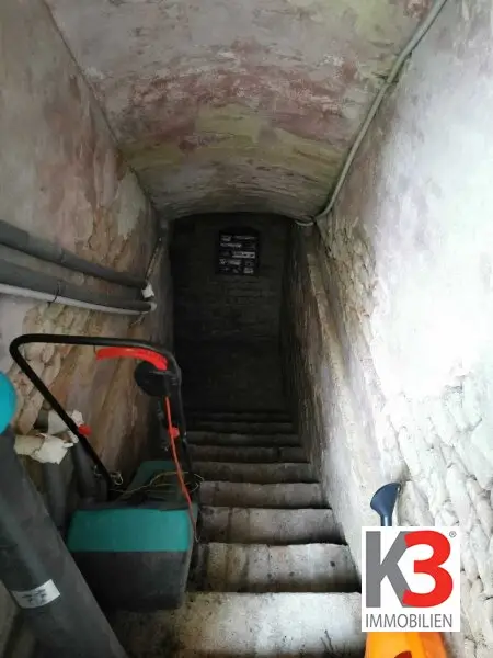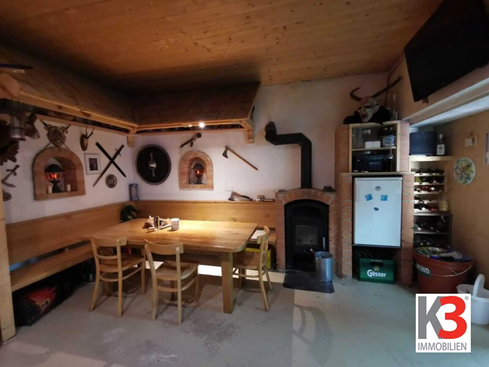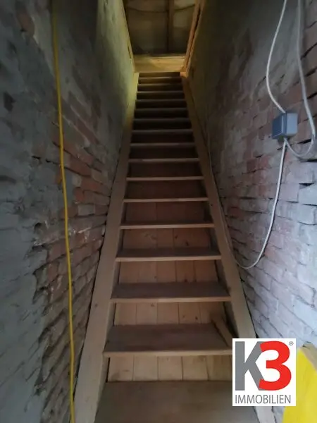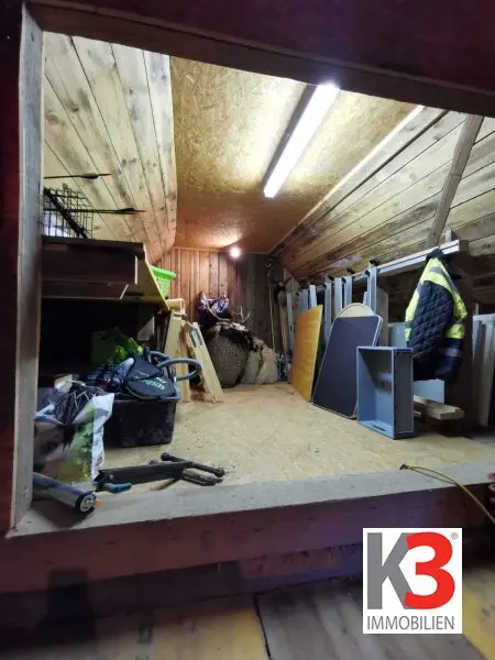 Die Werkstatt betritt man von außen mit Zugang zum Dachboden und zwei weiteren Räumen