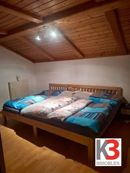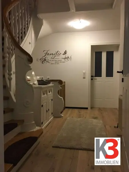 Vom großzügigen Wohnzimmer aus gelangen Sie direkt auf die Terrasse und in den Garten mit Pool – ideal zum Entspannen und für gesellige Stunden. Im Obergeschoss befinden sich drei helle Schlafzimmer, von denen aus Sie Zugang zu einem sonnigen Südbalkon haben.