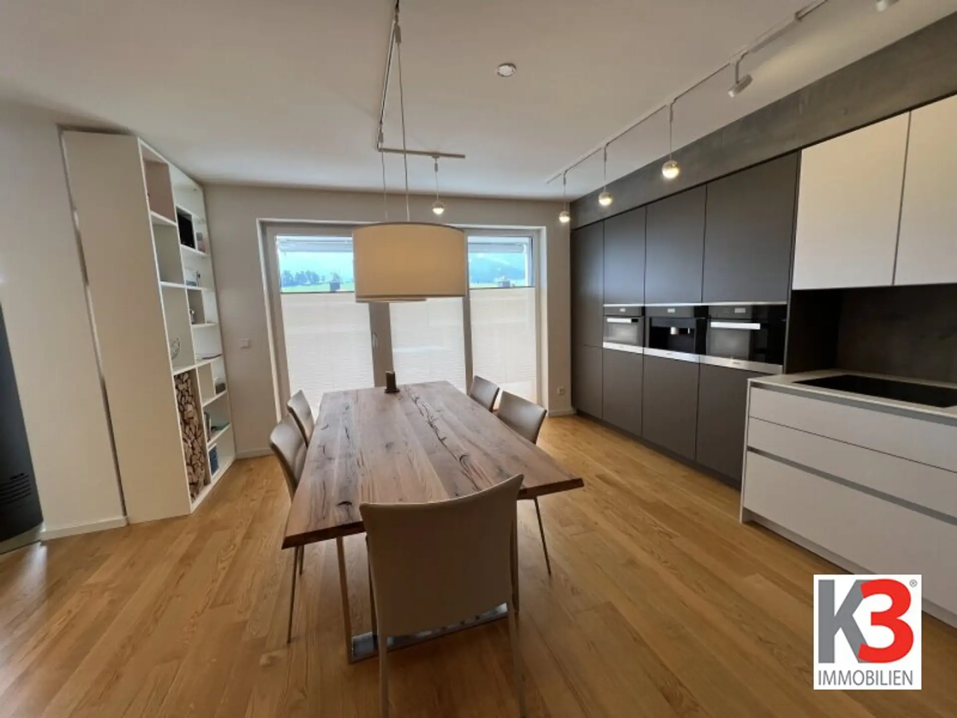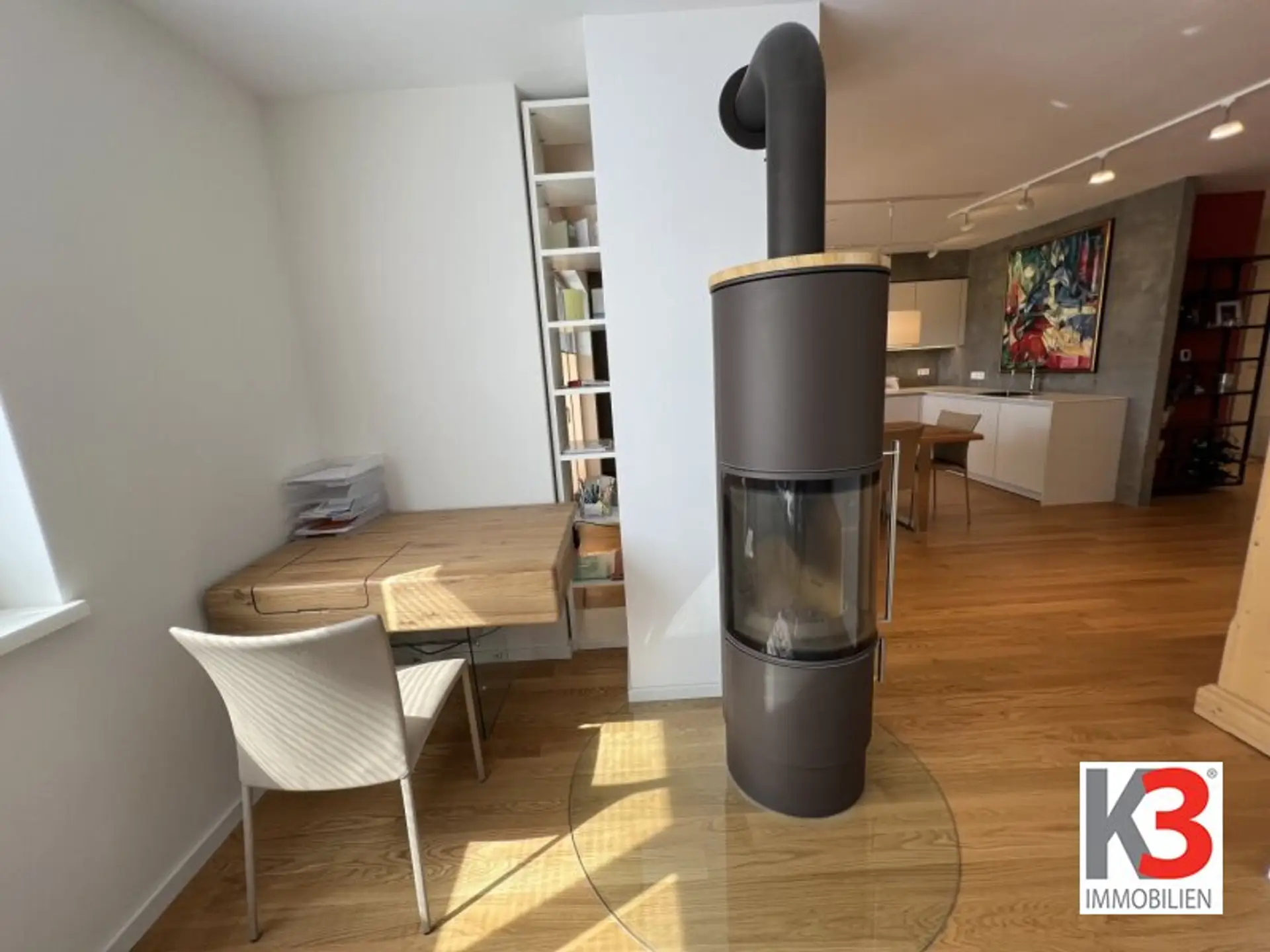 Das Herzstück dieser Immobile ist sicher der offene Koch-, Wohn-, Essbereich mit direktem Zugang zum Balkon. Die moderne, hochwertige Einbauküche bietet Highlights ohne Ende. Der großzügige Essbereich verspricht Gemütlichkeit pur. Der kuschlige Wohnbereich wird von einem schwenkbaren Kaminofen mit behaglicher Wärme versorgt.