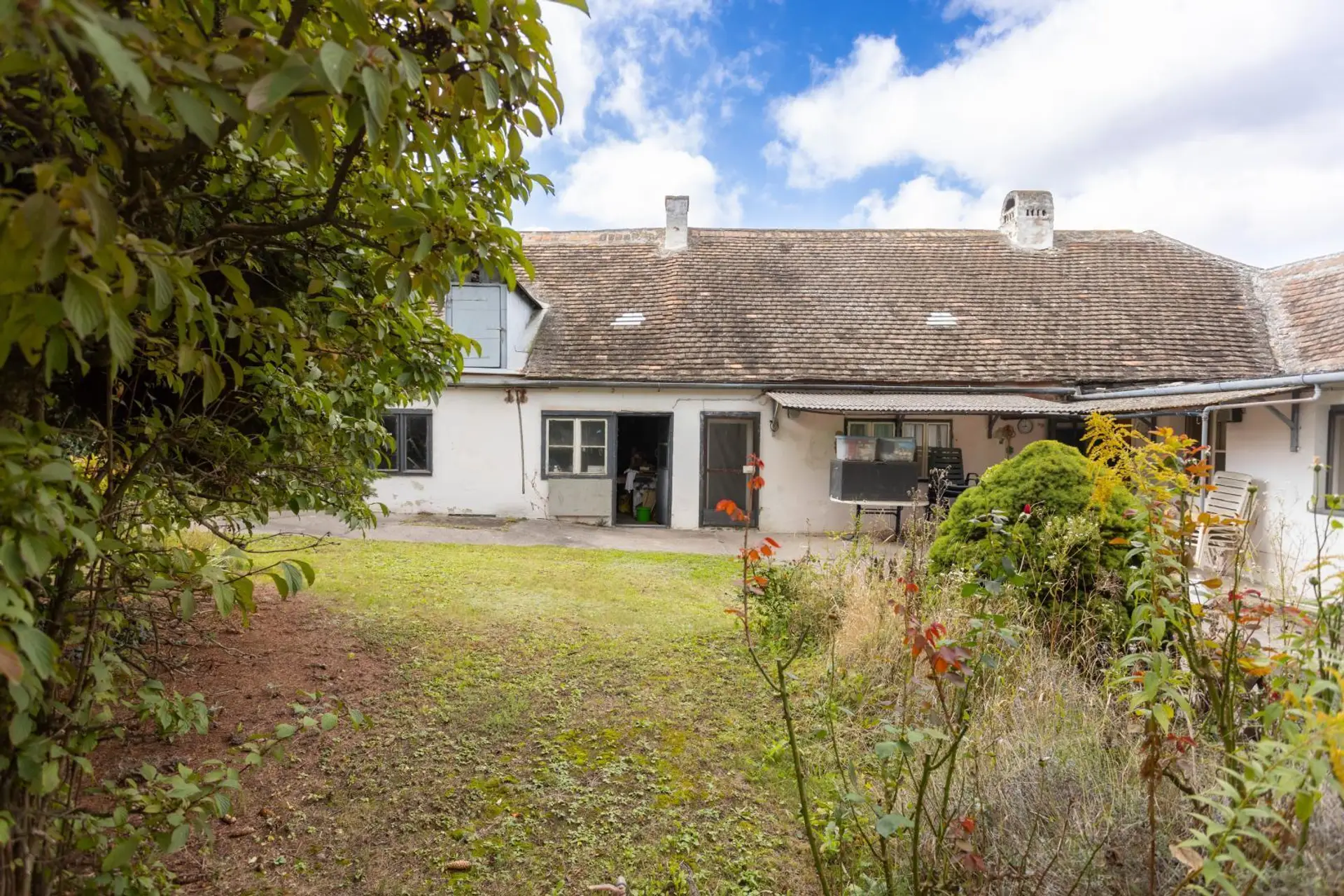 Der bestehende Altbestand (Ein-/Zweifamilienhaus) bietet die Option zur Sanierung oder zum Abbruch.