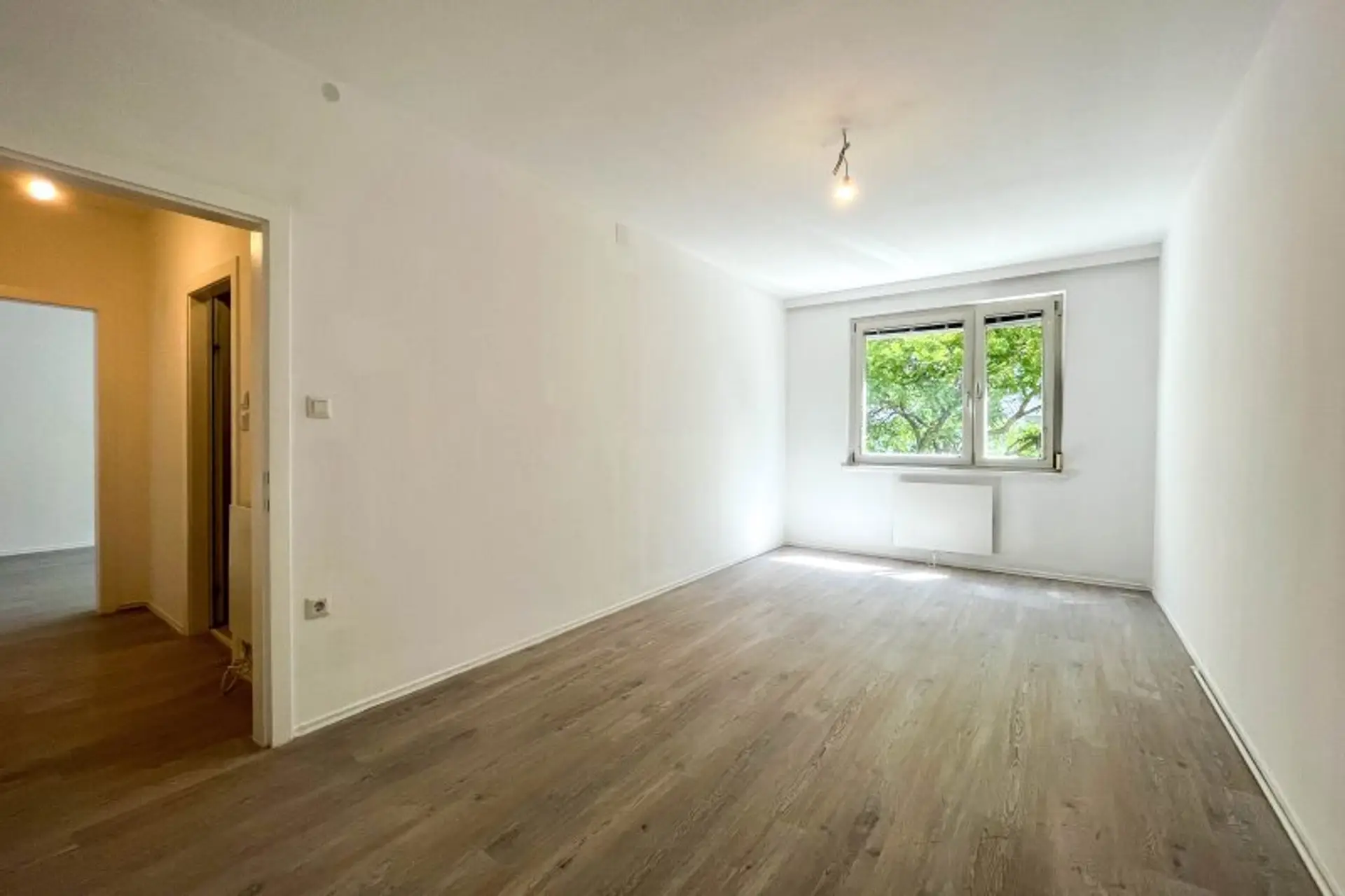 Der Vorraum führt in das helle Wohnzimmer mit offener, ausgestatteter Küche. Das geräumige Schlafzimmer bietet Platz für Bett und Stauraum. Das Badezimmer ist funktionell mit Badewanne, Waschbecken und WC ausgestattet. In allen Räumen ist Laminatboden verlegt, das Bad ist verfliest.