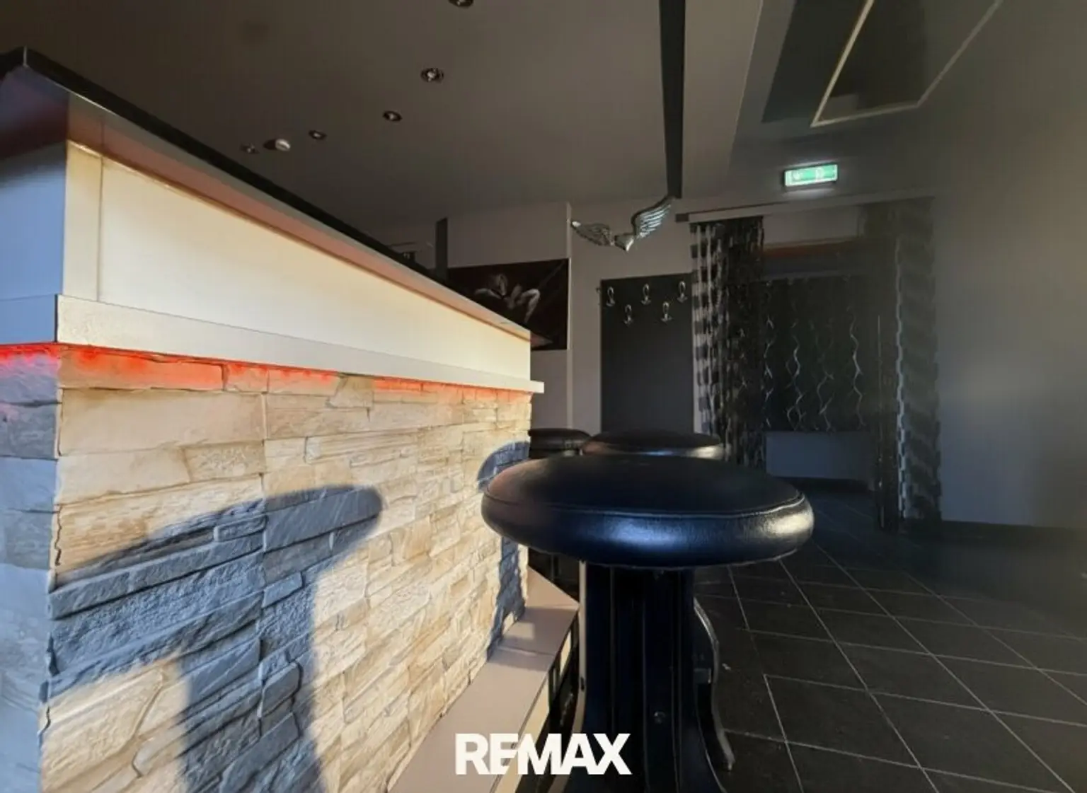 Im Erdgeschoss befindet sich ein großzügiger, offener Barbereich mit modernen Sitzlounges und einer Bar‑Lounge im Außenbereich. Getrennte Toiletten und ein Holzheizofen sorgen für Komfort und Atmosphäre – ideal für Gastronomie, Barbetrieb oder Veranstaltungsflächen.