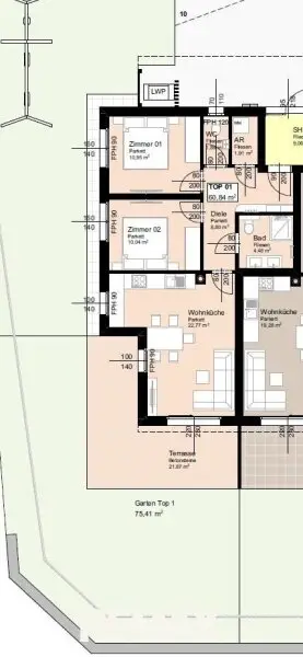 Die gegenständliche Wohnung TOP 1 ist im EG angesiedelt und hat bei einer Gesamtfläche von ca. 60,84m² folgende Raumaufteilung
