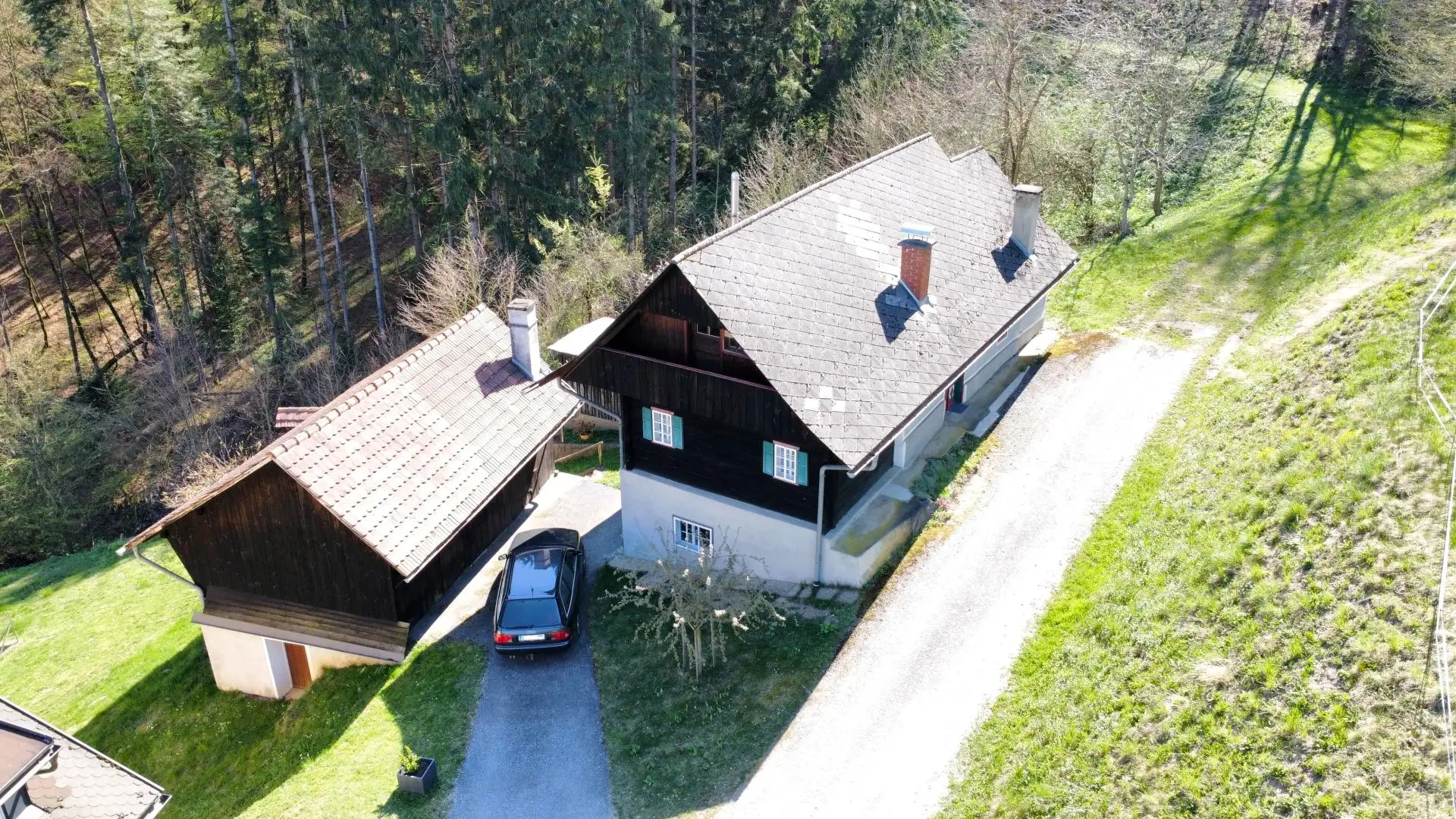Das Grundstück umfasst ca. 2.603 m². Ein Großteil der Fläche weist eine steile Hanglage auf, wodurch sich ein naturnahes Umfeld ergibt.