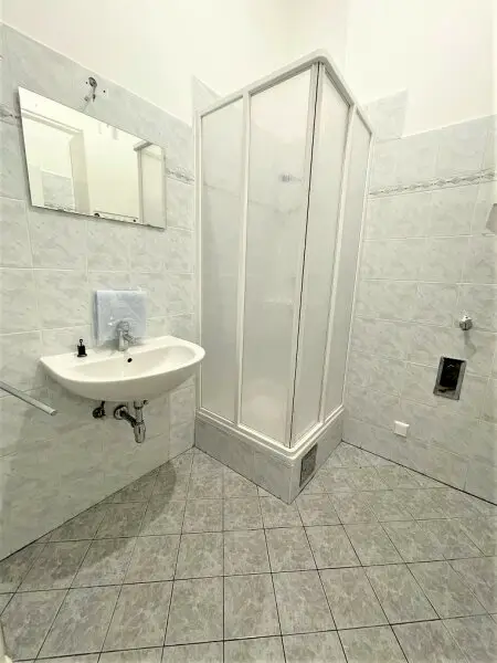 + BADEZIMMER MIT DUSCHE, WASCHTISCH UND WASCHMASCHINENANSCHLUSS