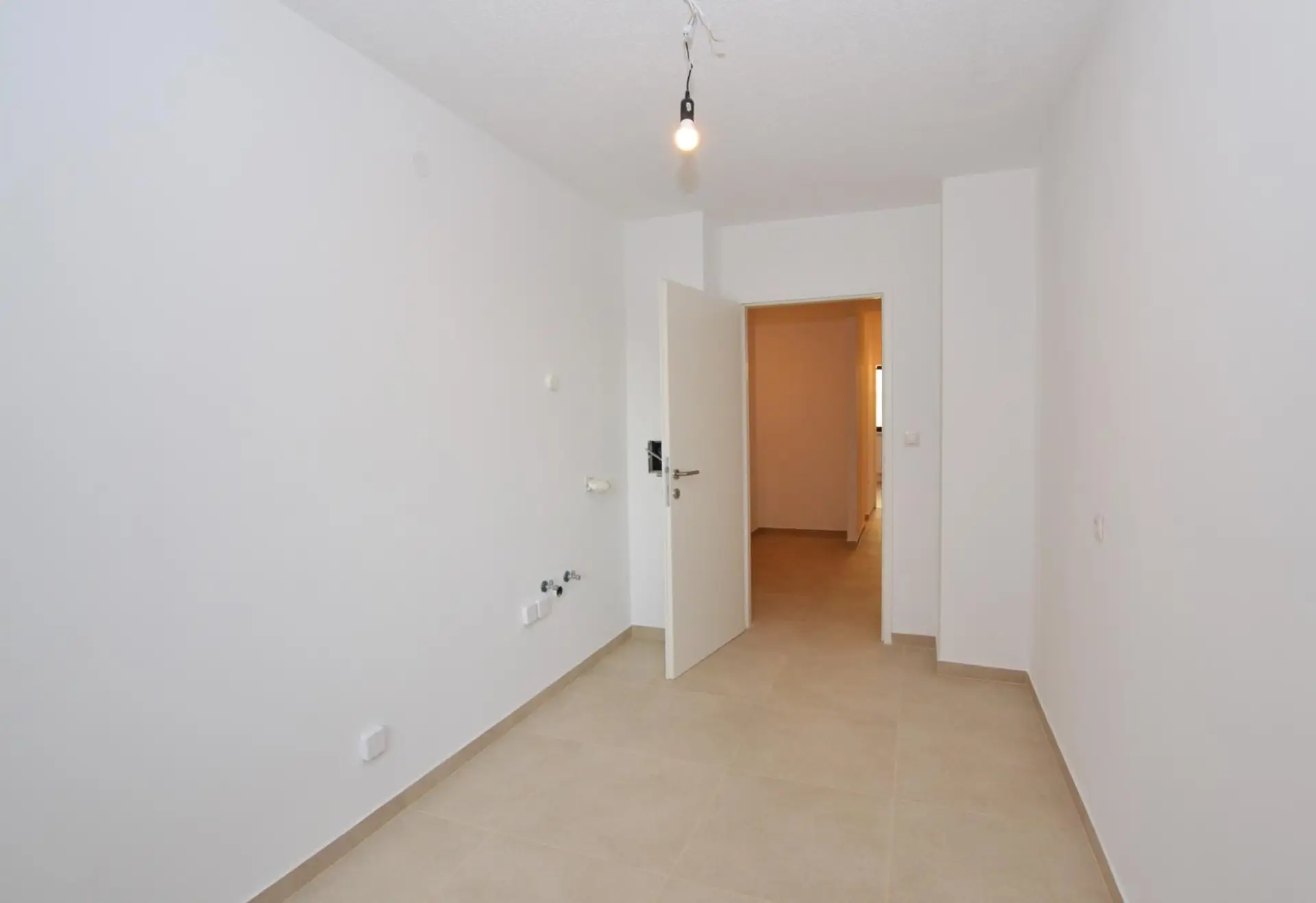 In der Küche sind alle Anschlüsse für eine moderne Küchenplanung bereits vorbereitet, inklusive eines Starkstromanschlusses.