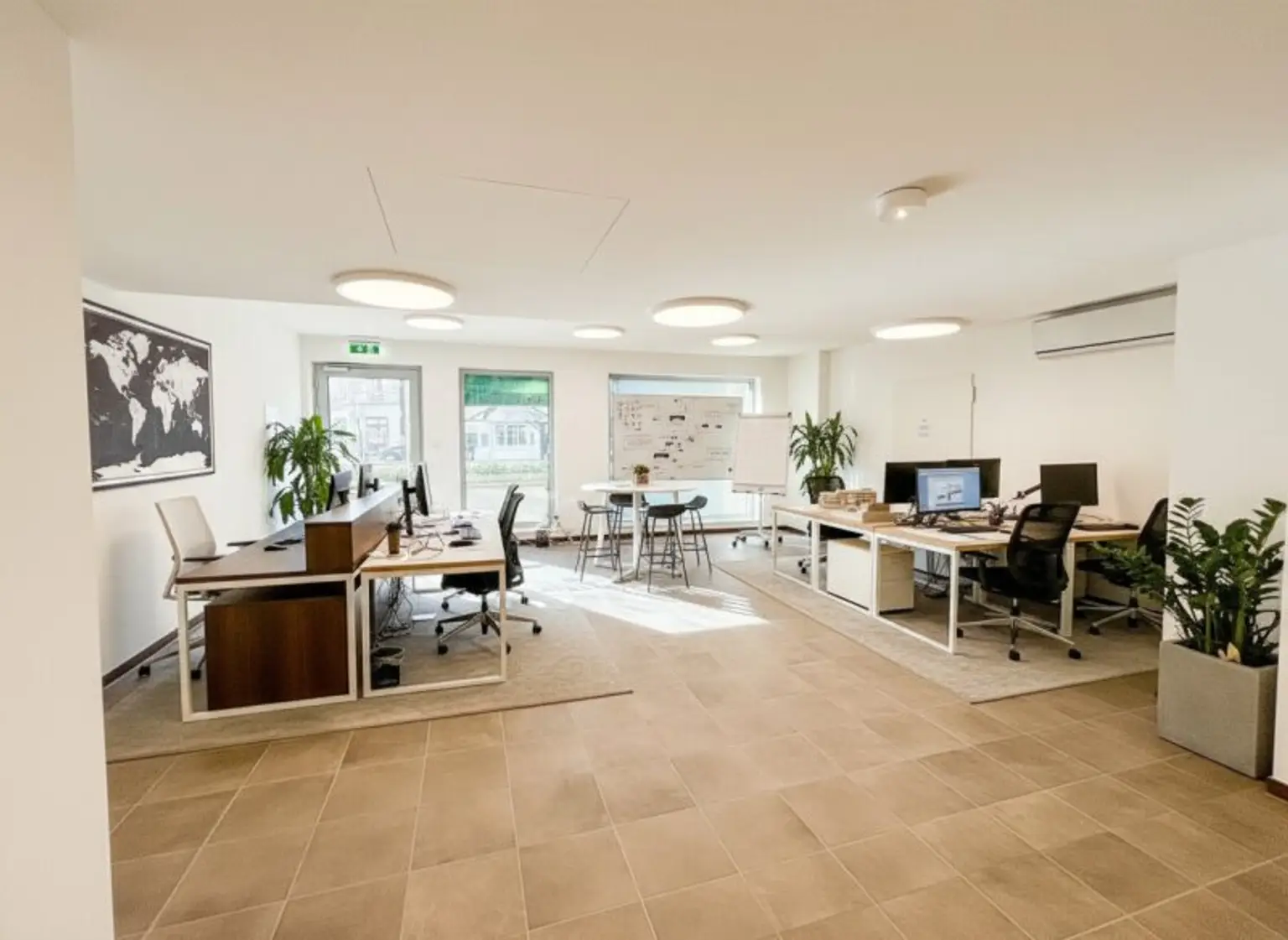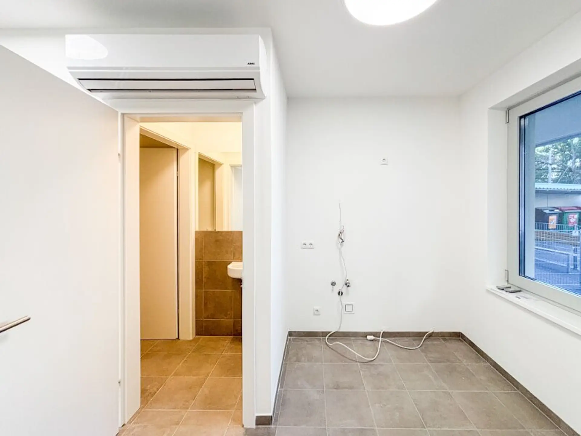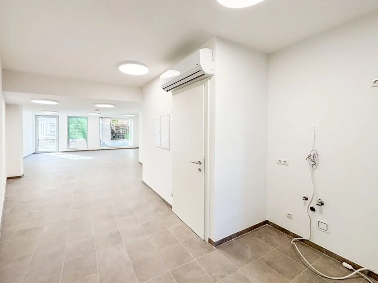 Das Objekt bietet einen flexiblen Grundriss und diverse potentielle Nutzungsmöglichkeiten, sowie einen Sanitärraum gemäß beiliegendem Plan. Als Bodenbelag wurden hochwertige Marazzi-Fliesen verlegt. Beheizt wird das Lokal mittels Fußbodenheizung, die Kühlung erfolgt über Fan Coils. Ein Teeküchenanschluss ist vorhanden.