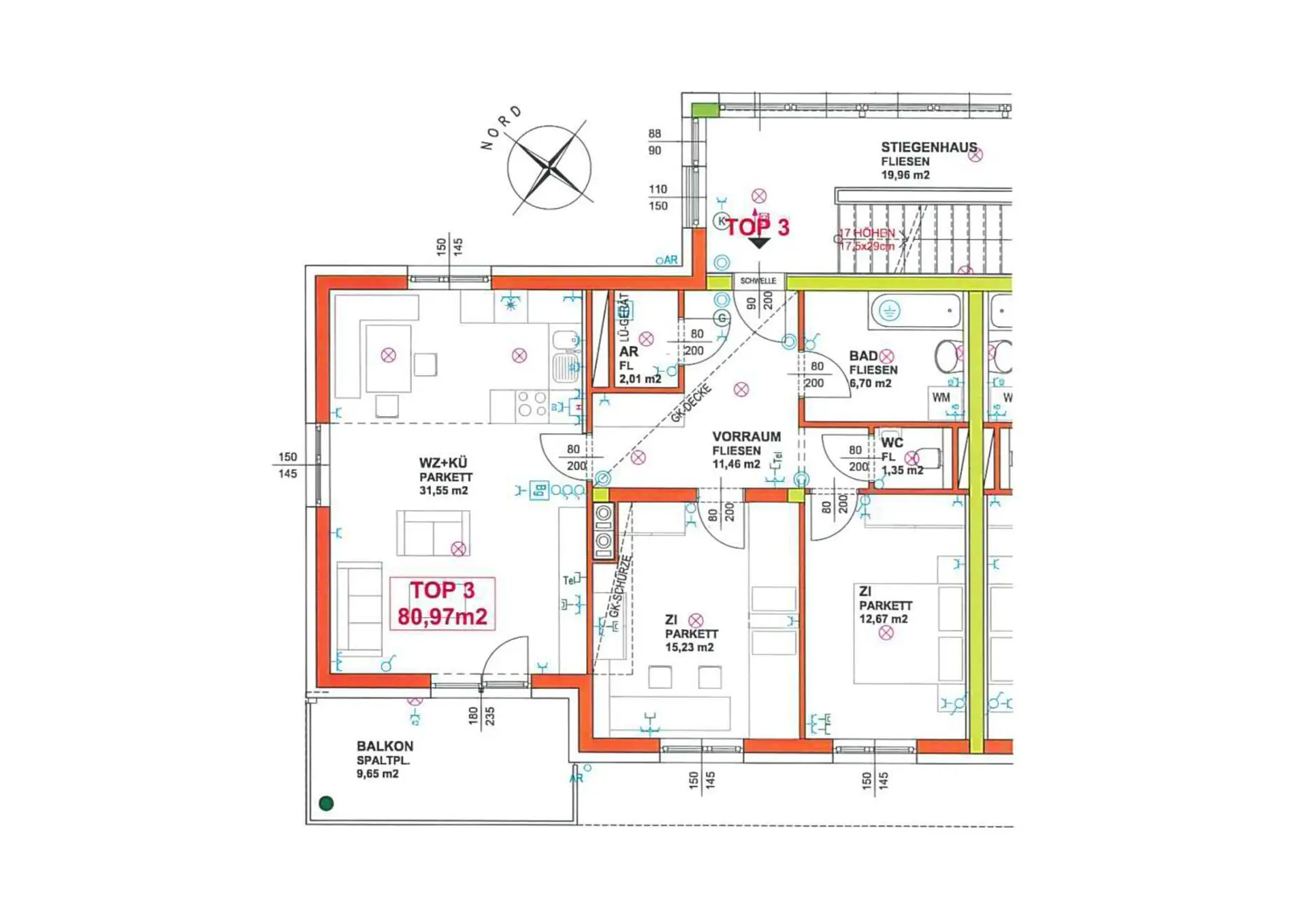 Die 3 Zimmerwohnung befindet sich im ersten Stock und bietet ca. 81m² Wohnfläche und einen Balkon mit ca. 10m². Von der geräumigen Wohnküche gelangt man direkt auf den Balkon. Während man den traumhaften Ausblick ins Grüne genießt lässt es sich hier herrlich entspannen.