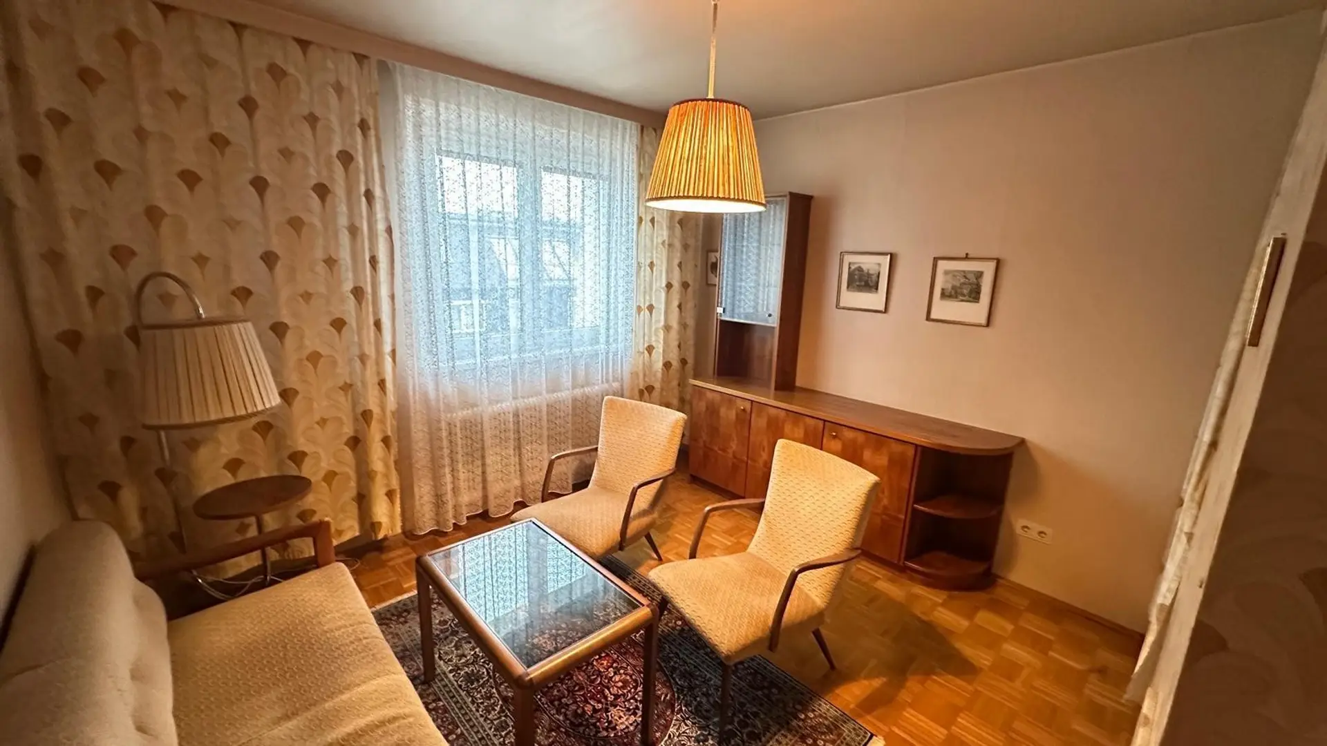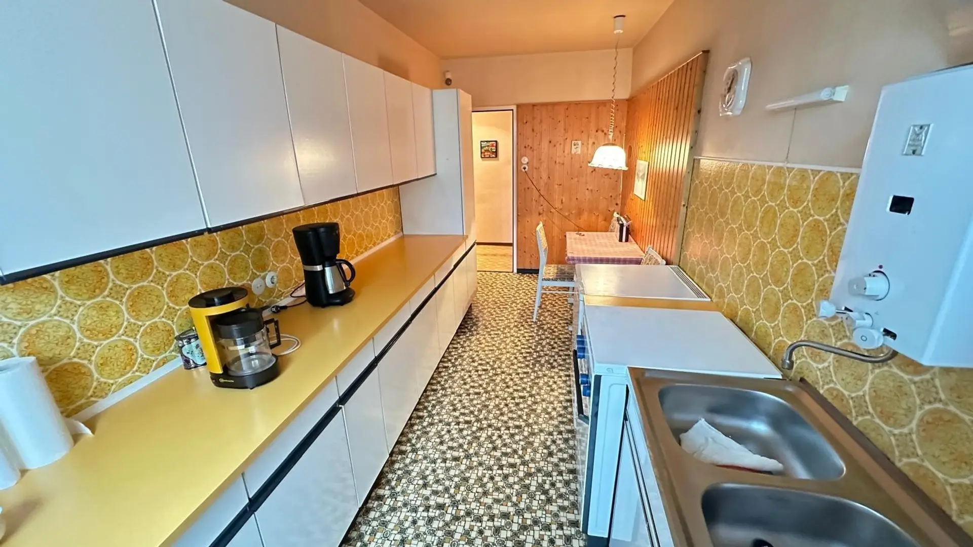 Die aktuelle Einrichtung und Gestaltung der Wohnung verbreiten einen authentischen 70er-Jahre-Charme und bieten damit eine solide Grundlage für individuelle Modernisierungsideen oder Retro-Fans.