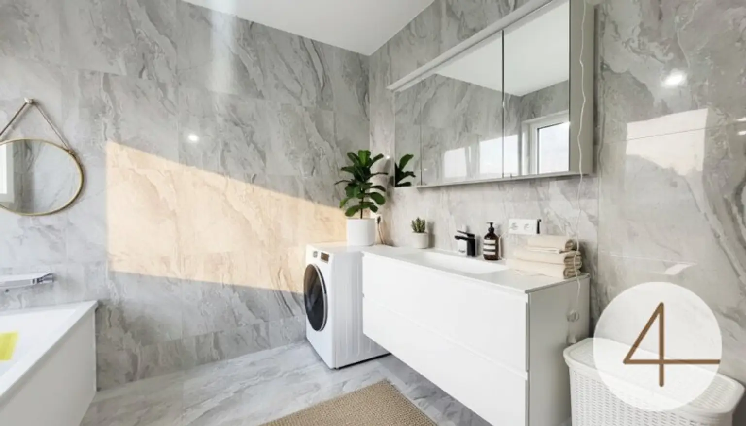 Moderne Ausstattung: Edles Parkett und stilvolle Fliesen schaffen ein komfortables Wohnambiente.