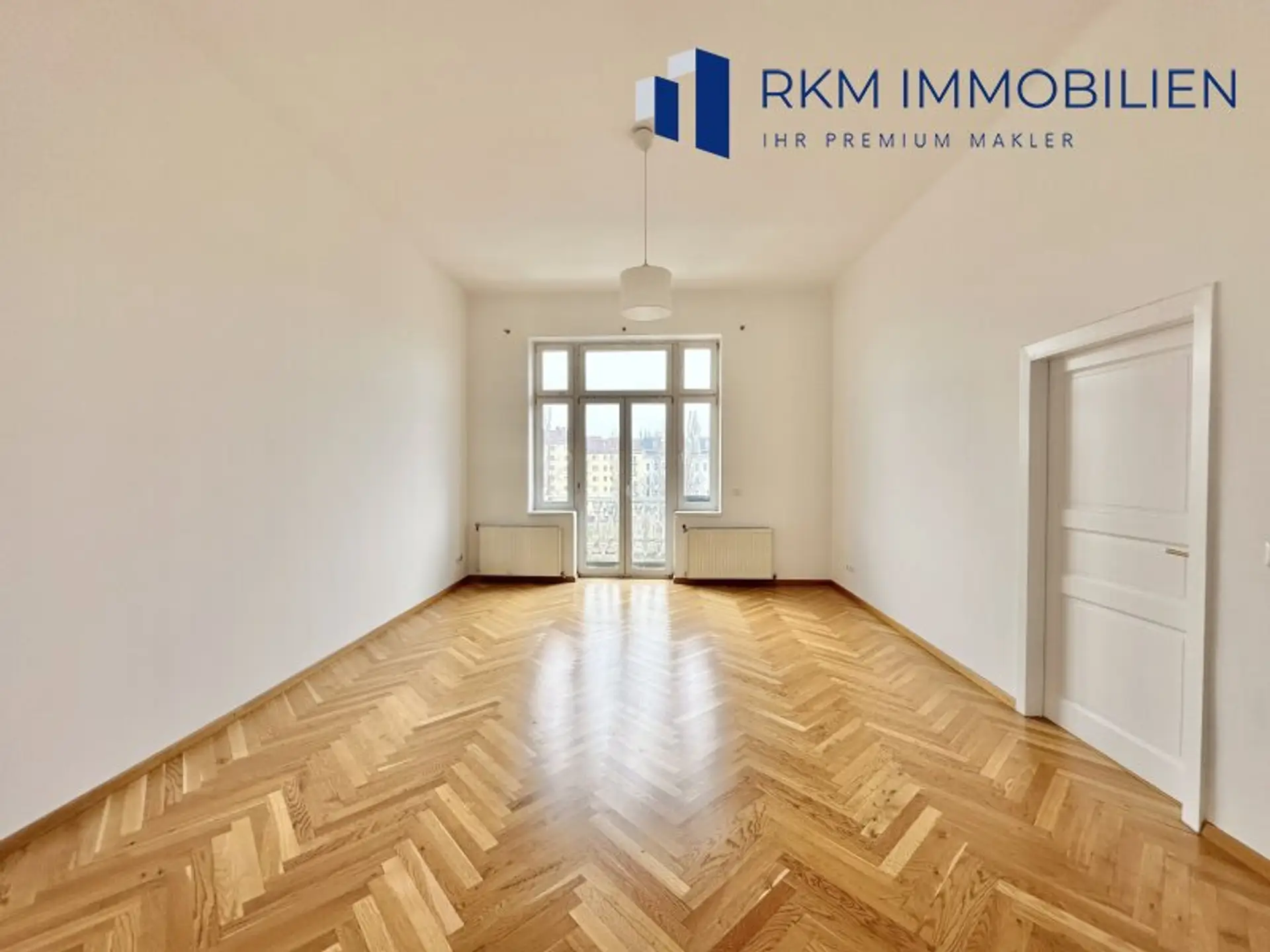 Hochwertige Altbau-Details wie hohe Decken, Flügeltüren, Fischgrätparkett und der Balkon mit eleganter Balustrade verleihen der Wohnung besonderen Charme. Von hier genießen Sie einen wunderschönen Blick auf den Donaukanal.