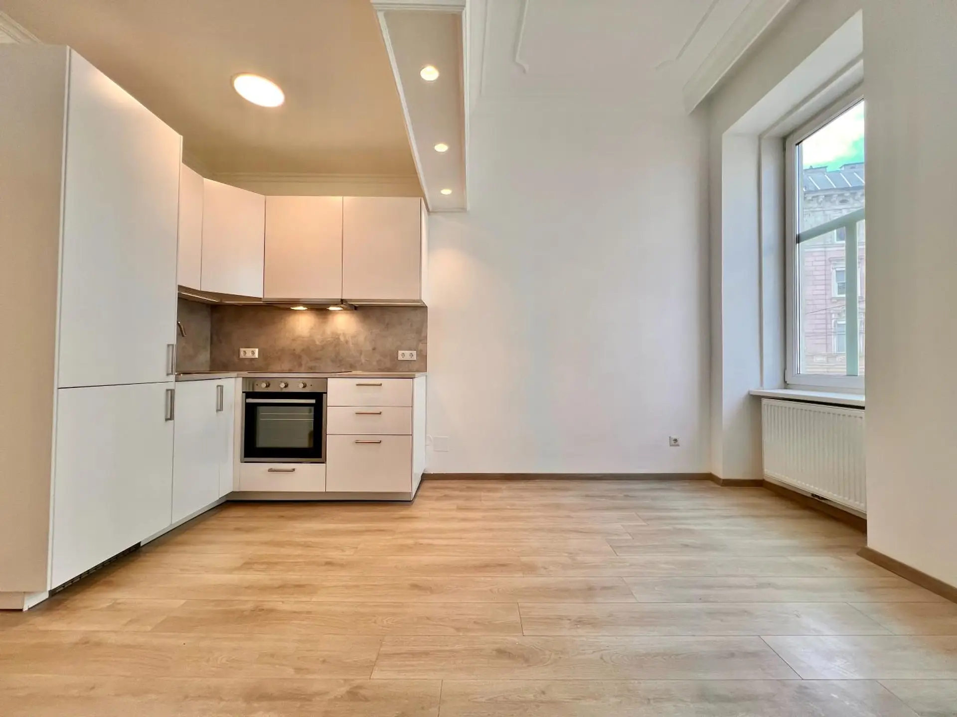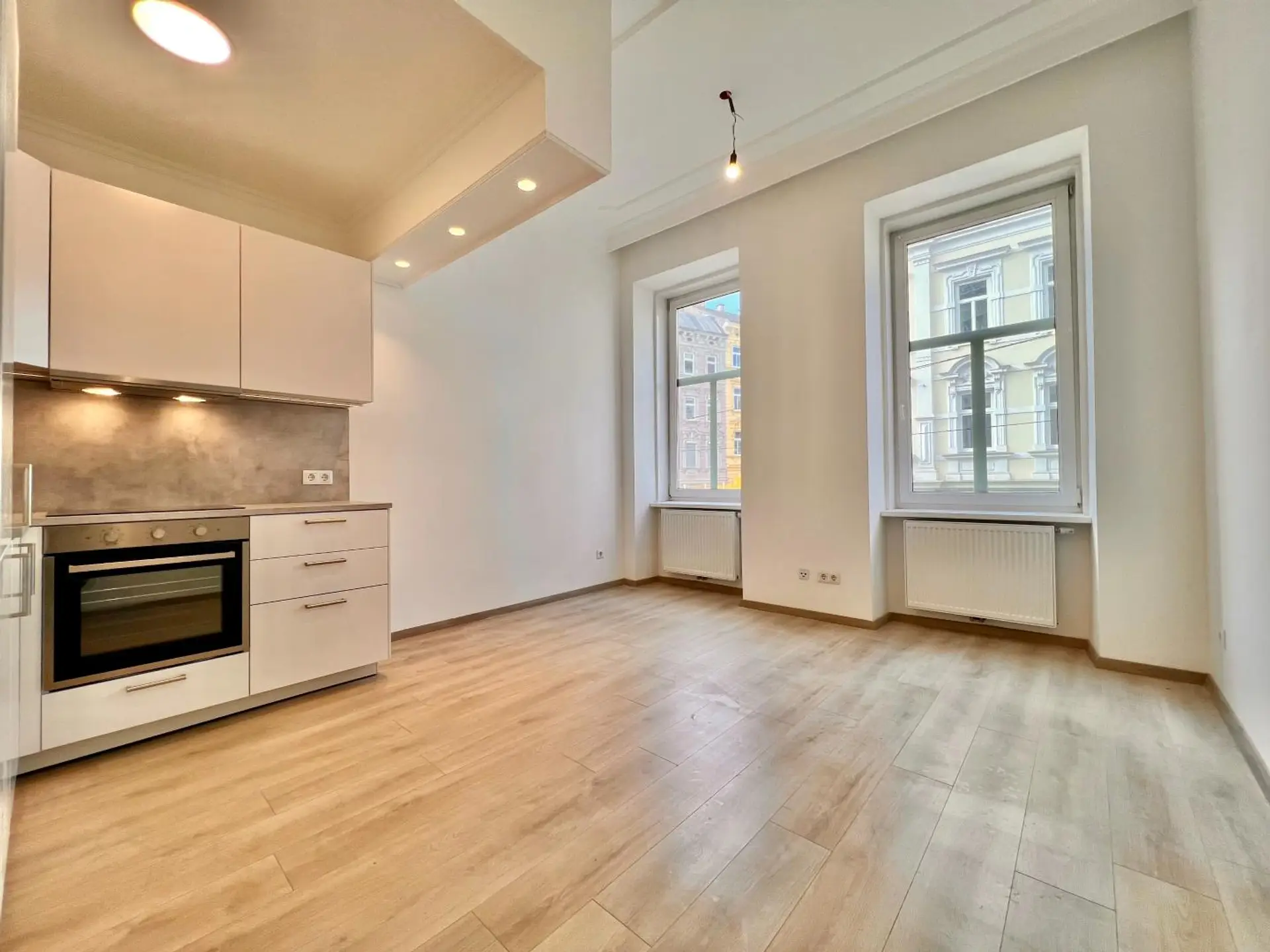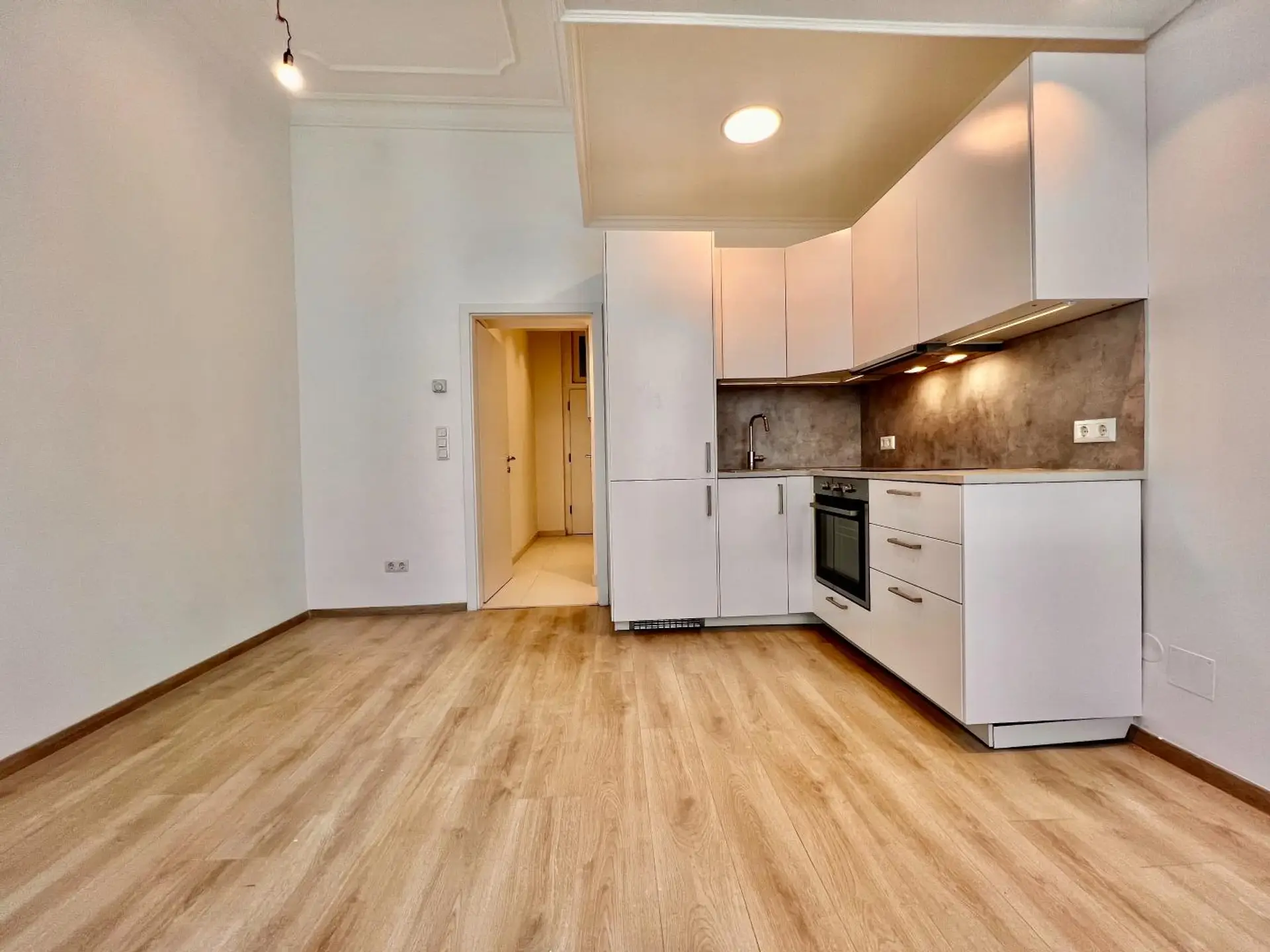 Kleine, feine, komplett sanierte 1-Zimmer-Eigentumswohnung in saniertem Altbau. Auch die Böden und die Elektrik wurden neu gemacht. Besonderes Wohnflair entsteht durch die Raumhöhe des Altbaus, die das helle Zimmer größer wirken lässt.
