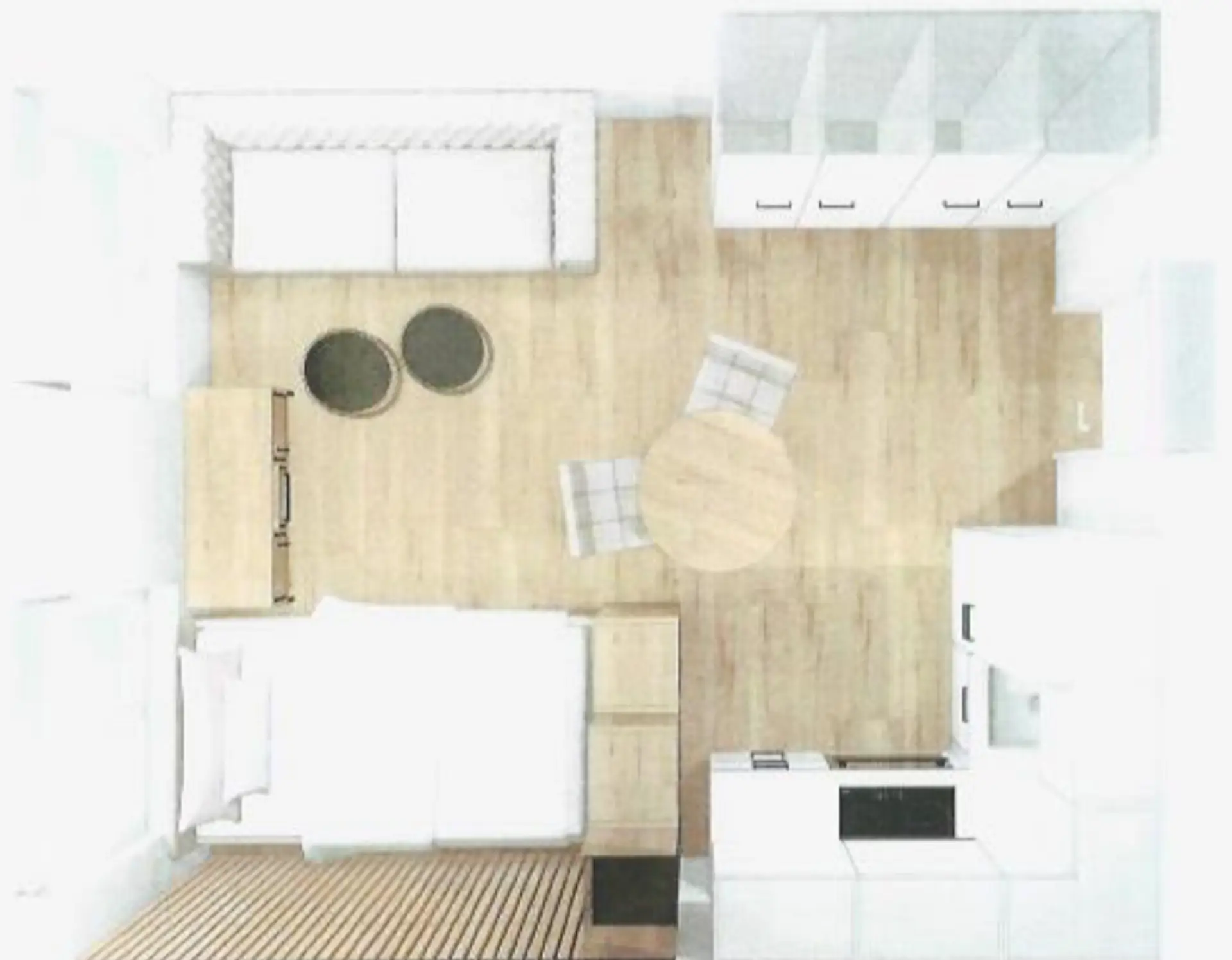 + Helles Wohn-/Schlafzimmer mit großen Fenstern