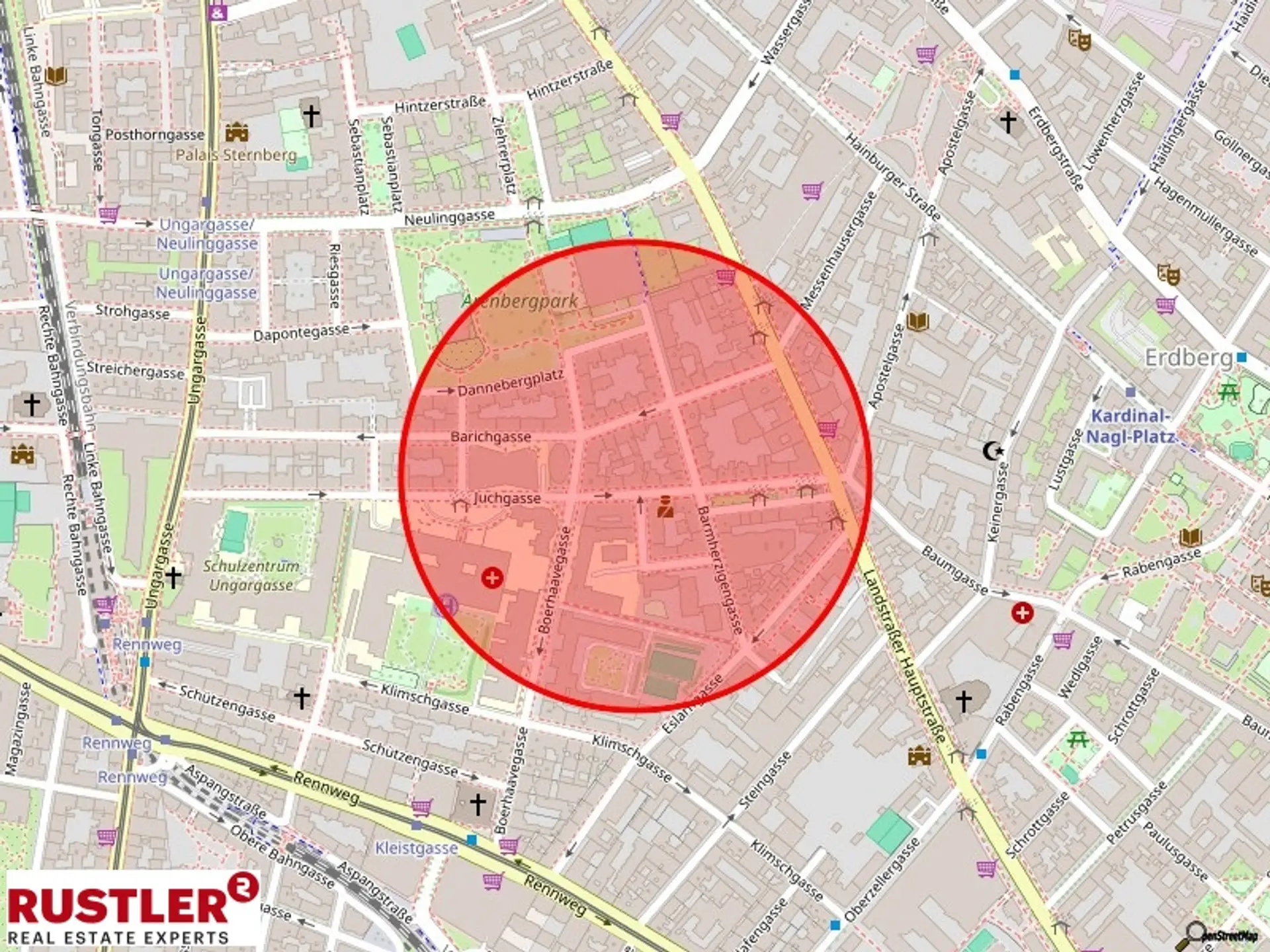 Dank der hervorragenden Anbindung an den öffentlichen Verkehr sind zahlreiche Bus-, Straßenbahn-, U-Bahn-(U3 Rochusgasse) sowie S-Bahn-Stationen (Rennweg oder Landstraßer Hauptstraße) in wenigen Gehminuten erreichbar. Zahlreiche Geschäfte des alltäglichen Bedarfs befinden sich um die Ecke.
