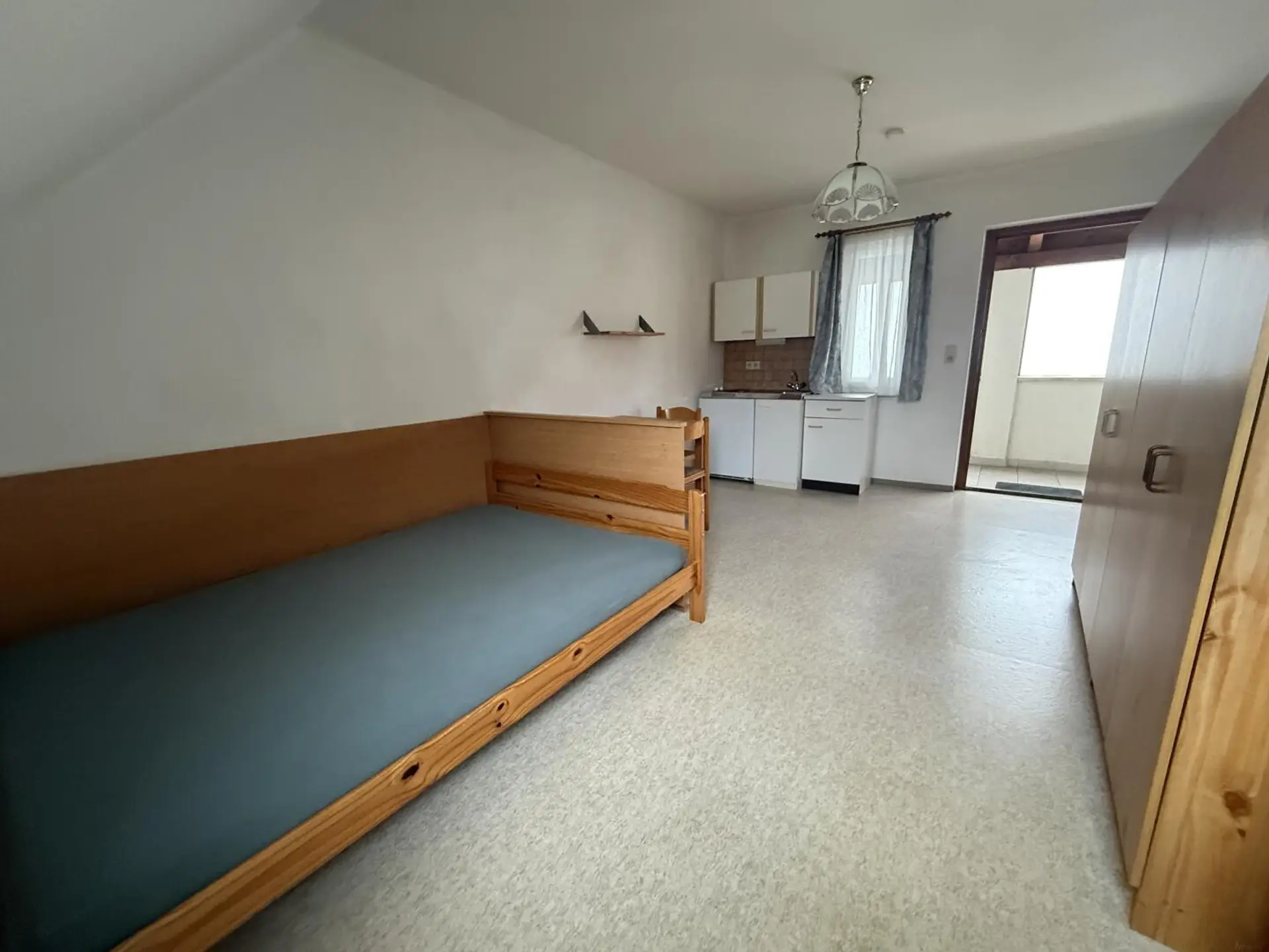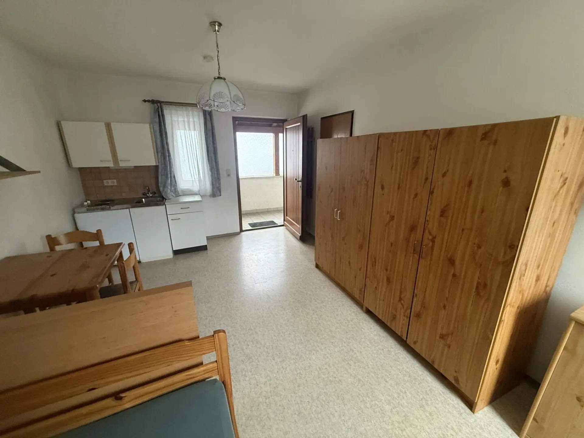 Wir vermitteln hier eine 1 Zimmer Mietwohnung mit Bad und WC. Küche möbliert mit einer kleinen Einheit. Ebenso sind ein Bett sowie Tisch mit 2 Stühlen und 1 Schrank vorhanden. Das Bad ist mit Dusche und WM Anschluss ausgestattet. Parkplatz ist vorhanden sowie auch ein Kellerabteil.