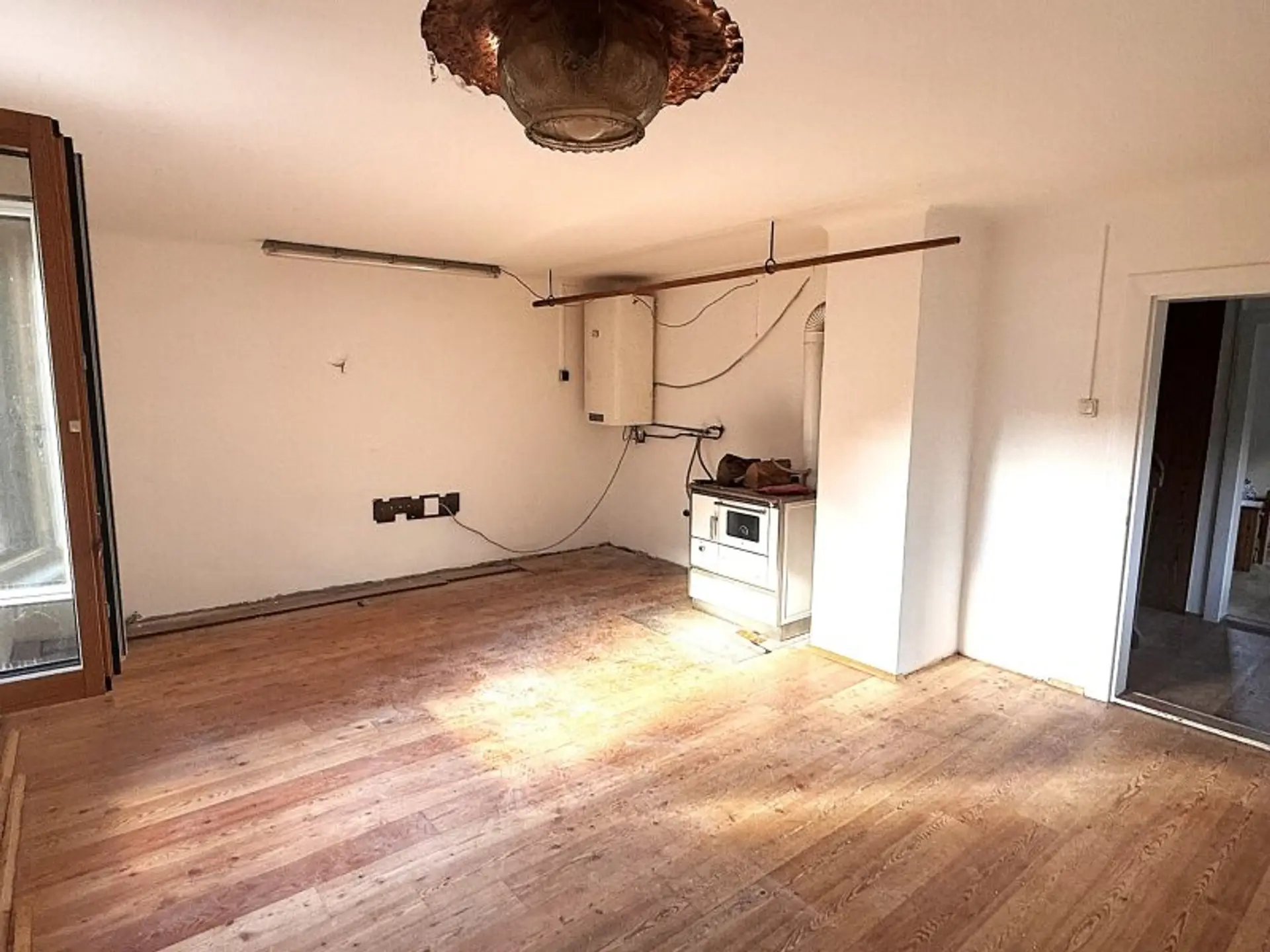 - Einzelöfen: Sparherd in der Küche, Kaminofen im Wohnzimmer, Beheizung mit festen Brennstoffen