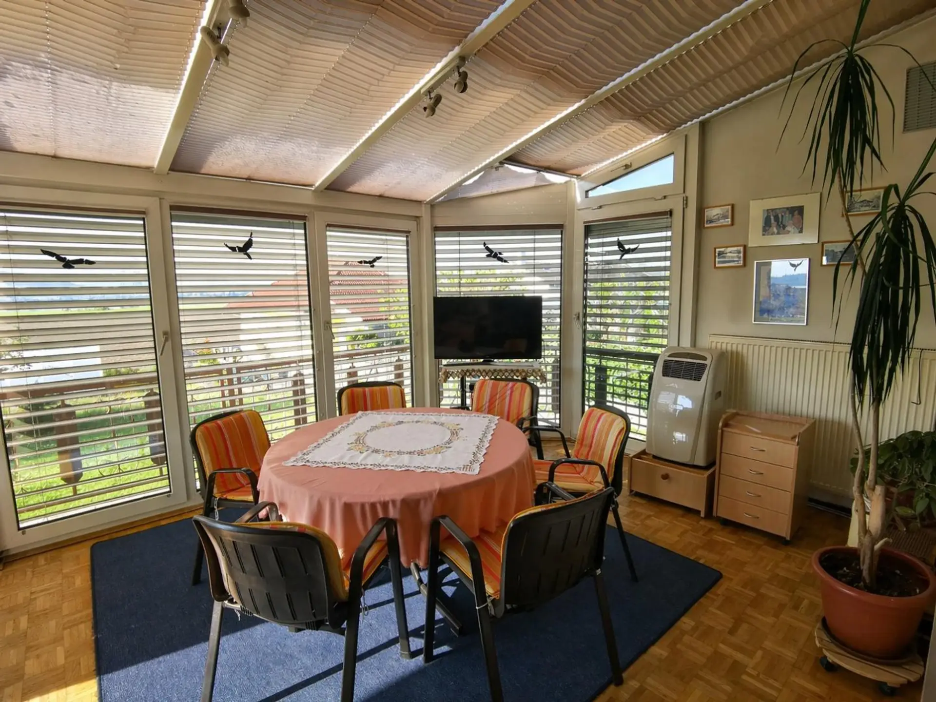 AUSSTATTUNG: Holzfenster, Außenrollläden, Wärmedämmung, Kamin, Wintergarten mit elektronisch bedienbarer Beschattung, Ölzentralheizung, Gartenbewässerung, Schwimmbad, Garage im Keller
