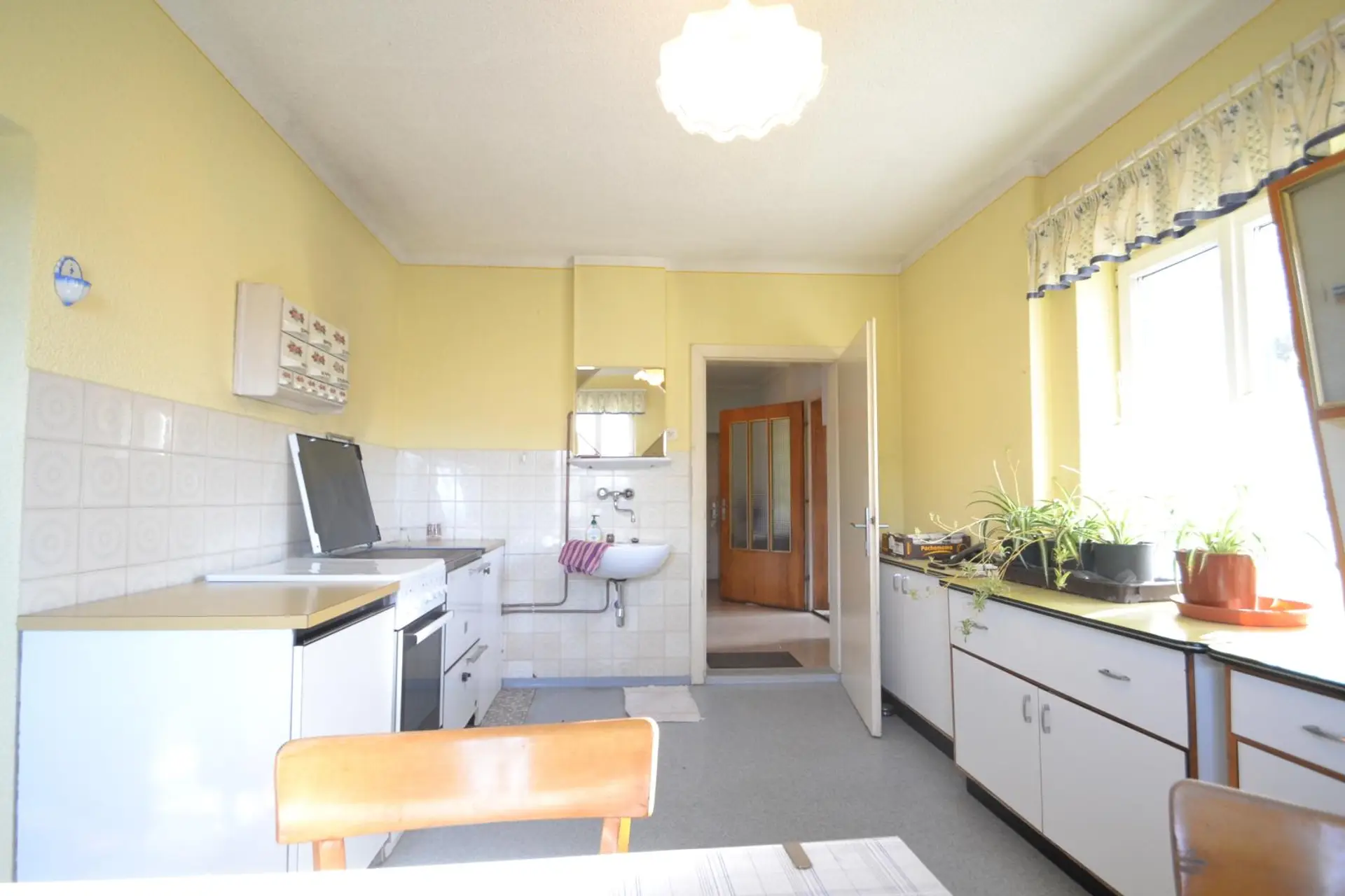 * helle Küche mit Holzofen, 3 Zimmer, Bad mit Wanne, 2 WC`s